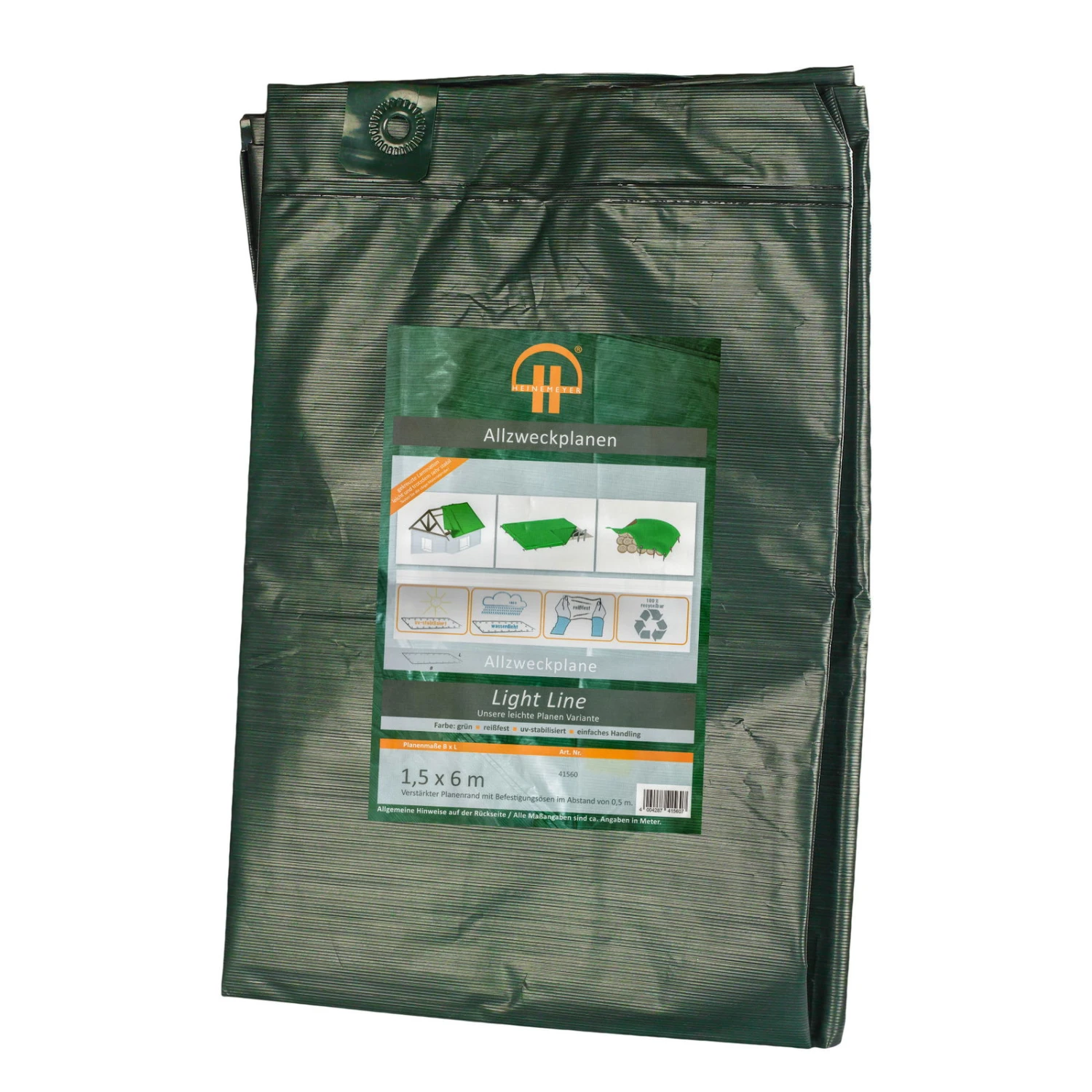 Das geringe Gewicht der in vier verschiedenen Größen erhältlichen Allzweckplane Light Line grün ermöglicht ein leichtes und praktisches Handling.