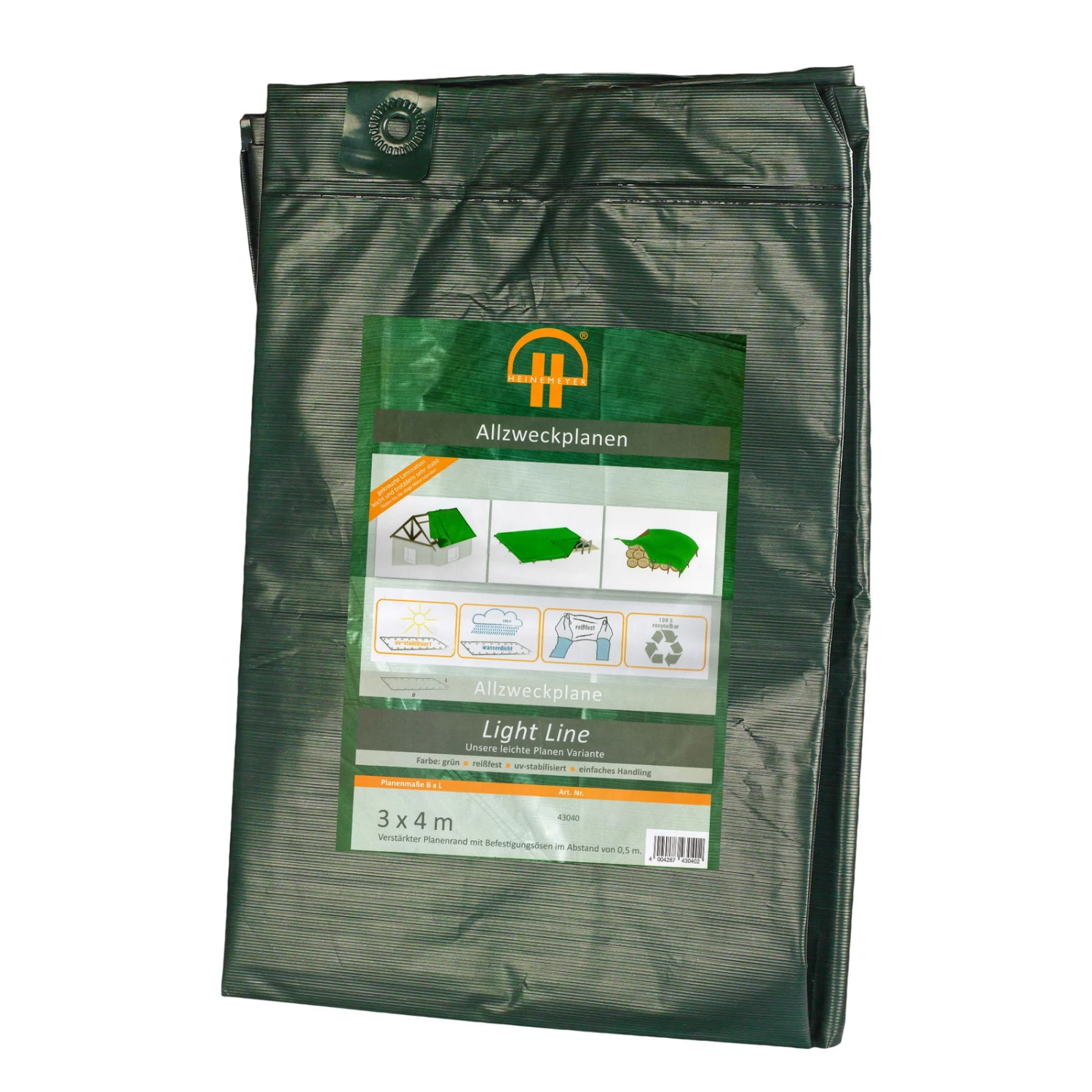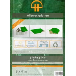 Das geringe Gewicht der in vier verschiedenen Größen erhältlichen Allzweckplane Light Line grün ermöglicht ein leichtes und praktisches Handling.