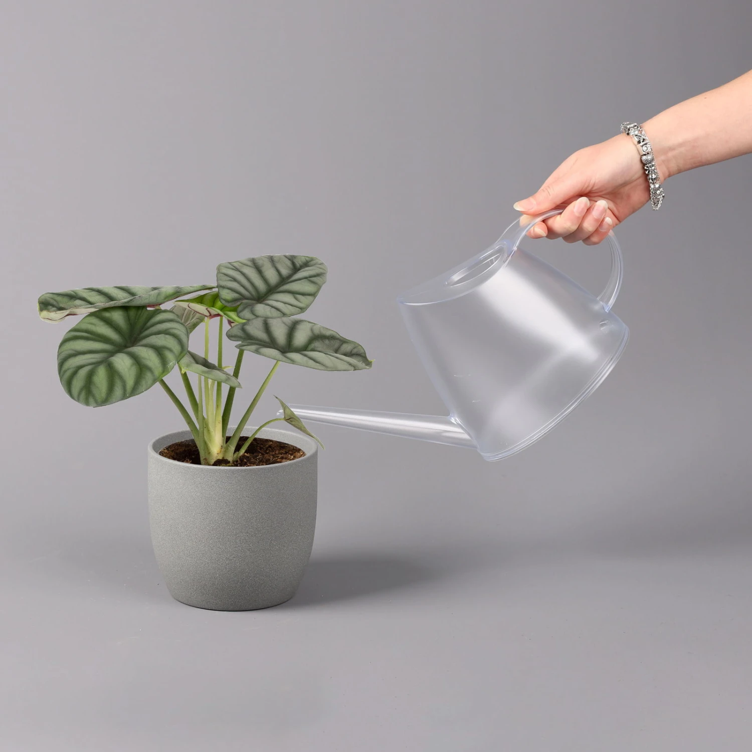 Das Pfeilblatt (Alocasia baginda ‚Silver Dragon‘), auch unter den Namen Alokasie oder Elefantenohr bekannt, ist eine prächtige Blattschmuckpflanze, welche ursprünglich aus dem tropischen asiatischen Raum stammt und besonders durch die großen, oft kontraststarken Blätter überzeugt. Charakteristisch für die Alocasia baginda ‚Silver Dragon‘ sind die ovalen Blätter mit silbergrauer Oberfläche und kontraststarken, dunklen Blattadern. Die Pflanze zählt zur Familie der Aronstabgewächse und am Naturstandort werden Pfeilblätter bis zu 8 Meter groß, in der Wohnung kann sie bis zu 0,5 Meter erreichen.