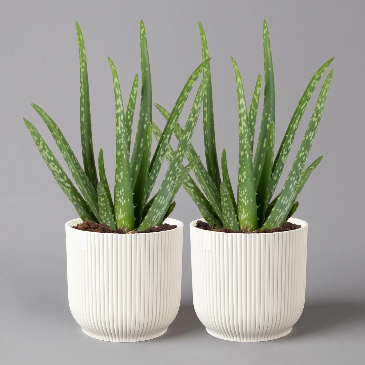 Aloe Vera In Übertopf Vibes Weiß, Topf-Ø 12 Cm, Höhe Ca. 35 Cm, 2er-Set