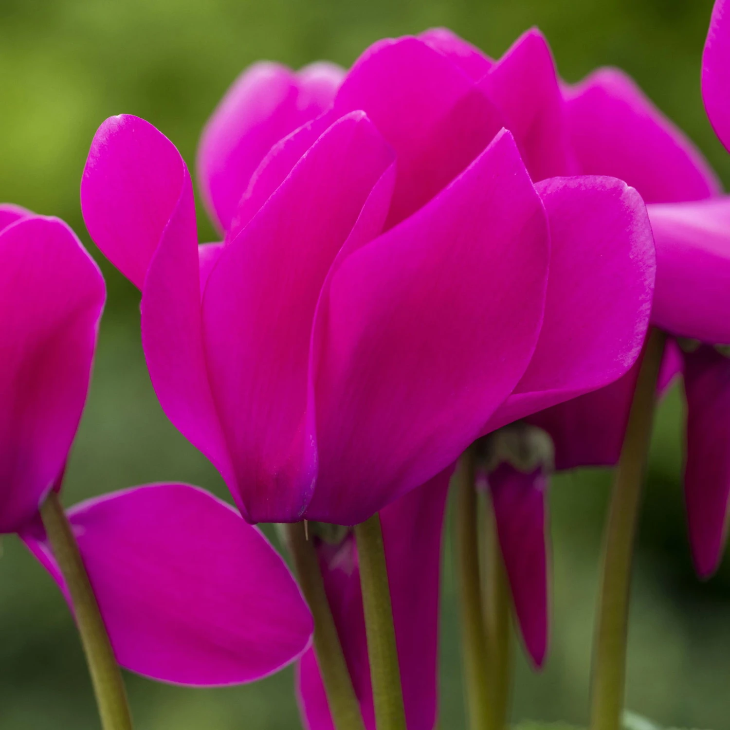 Die Blüten des Alpenveilchens sind je nach Sorte glattrandig bis gefranst und sitzen an langen Stielen oberhalb der Blätter. Die Blütezeit beginnt ab September und reicht bis in den April hinein.