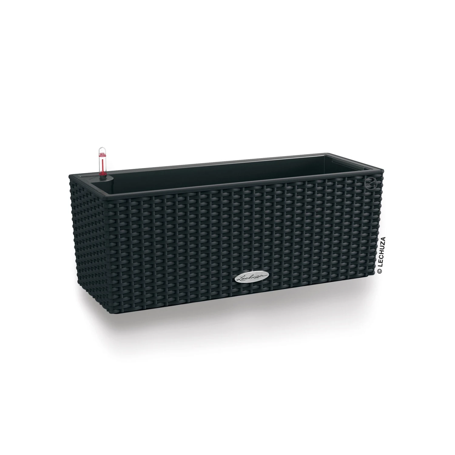 Dieser schwarze Pflanzkasten ist ein stilvoller Hingucker und wertet Ihr Begrünungskonzept merklich auf. Der Balkonkasten ‚Balconera Cottage 50‘ von Lechuza aus hochwertigem, UV-beständigem Kunststoff lässt für Ihre Pflanzen optimale Wachstumsbedingungen entstehen und eignet sich hervorragend für die Verwendung in den Innenräumen und outdoor.