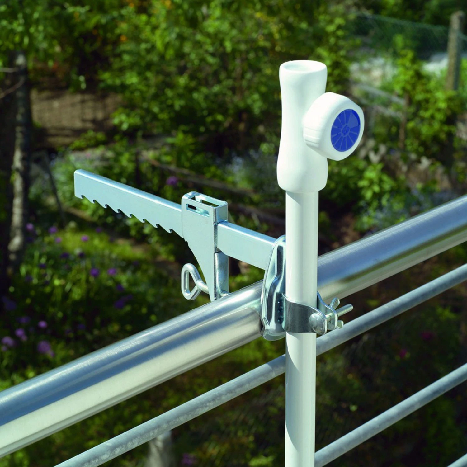 Die Balkonklammer mit einem Klemmbereich von 190 Millimetern von Schneider Schirme besteht aus hochwertigem, galvanisch verzinktem Stahl und lässt sich mit wenigen Handgriffen am Balkongeländer befestigen. Diese robuste Balkonklammer verleiht Ihrem Sonnenschirm ein Plus an Stabilität und lässt Sie unbeschwert Ihre schattige Oase genießen.