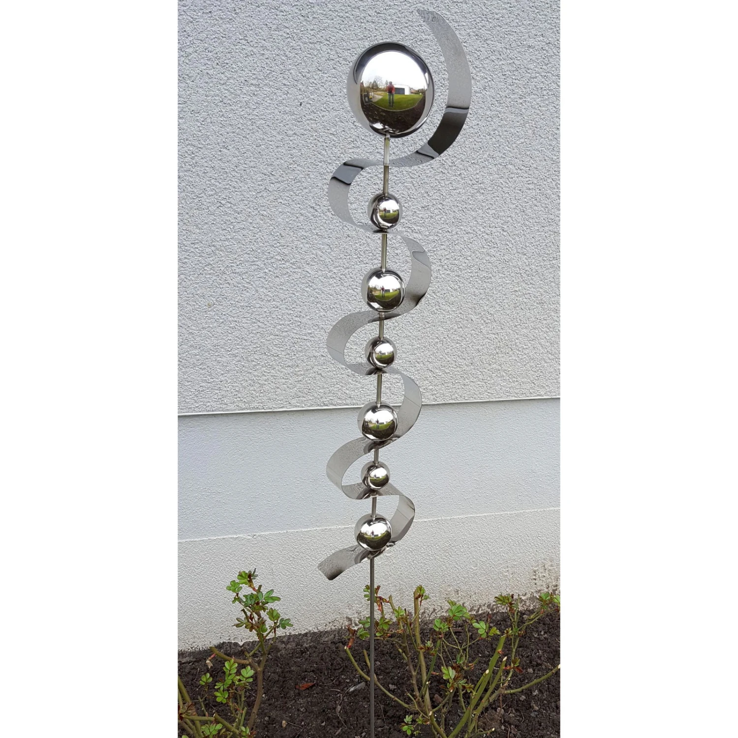 Der wundervolle Beetstecker Uranus aus Edelstahl macht aus jedem Rosenbeet ein prachtvolles Kunstwerk. Der moderne Gartenstecker mit insgesamt 7 Kugeln und passendem Stab wird einfach in die Erde von Blumenbeeten oder Pflanzenkübeln gesteckt und zieht mit seiner stilvollen Optik alle Blicke auf sich.