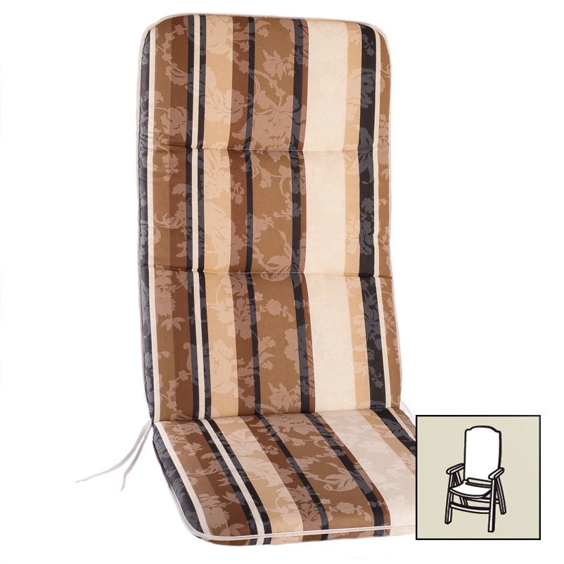 Markenqualität von Best – Made in Germany. Komplettieren Sie Ihre gemütliche Gartensitzgruppe auf dem Balkon, der Terrasse oder im Garten mit diesen hübschen Hochlehnerauflagen in modernem Braun. Bei dieser Gartenstuhlauflage handelt es sich um eine praktische Wendeauflage, die durch die 6 cm starke Auflage luftig-leicht und zugleich überaus komfortabel wirkt.