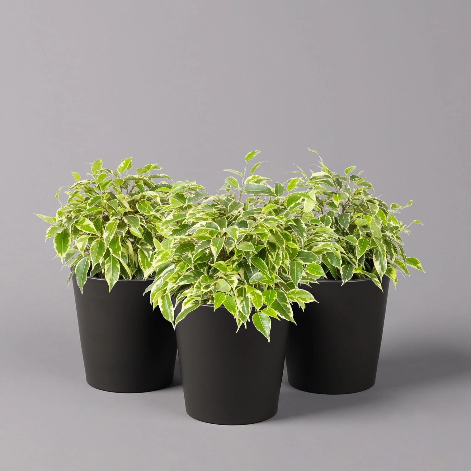 Birkenfeige ‚Kinky‘ In Keramiktopf Anthrazit, Topf-Ø 12cm, H: Ca. 25 Cm, 3er-Set