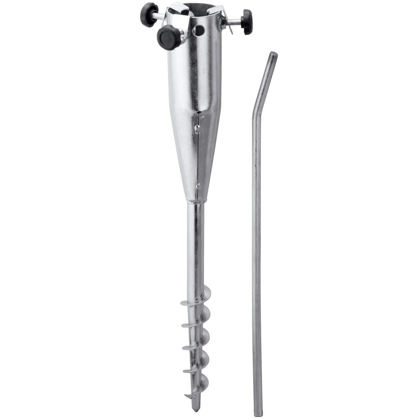 Dieser praktische Bodendübel als feuerverzinktem Stahl ist eine unkomplizierte Lösung, um Ihrem Sonnenschirm einen festen Stand zu verleihen. Der Bodendübel hat drei praktische Zentrierschrauben, lässt sich einfach eindrehen und eignet sich für alle Sonnenschirme mit einem Rochdurchmesser zwischen 38 und 58 Millimetern.