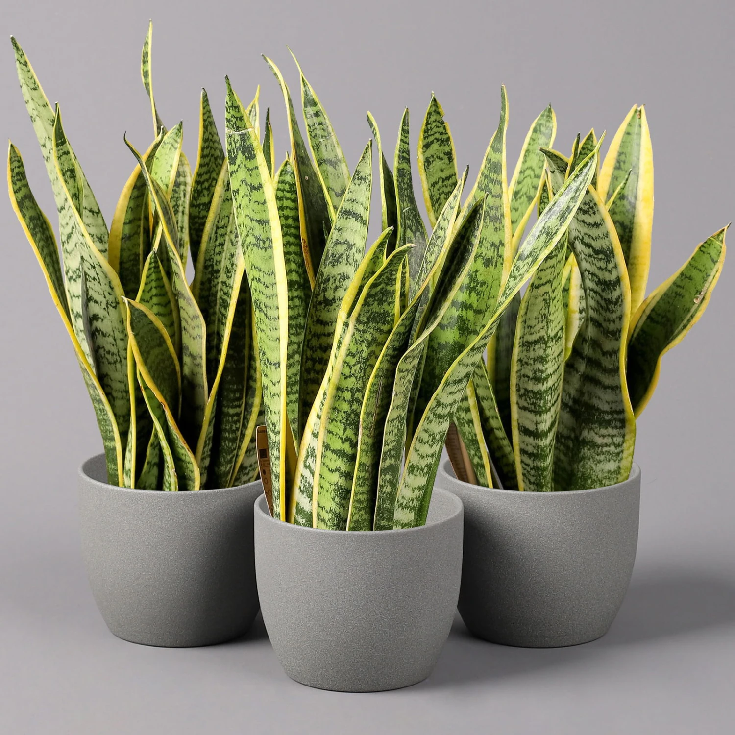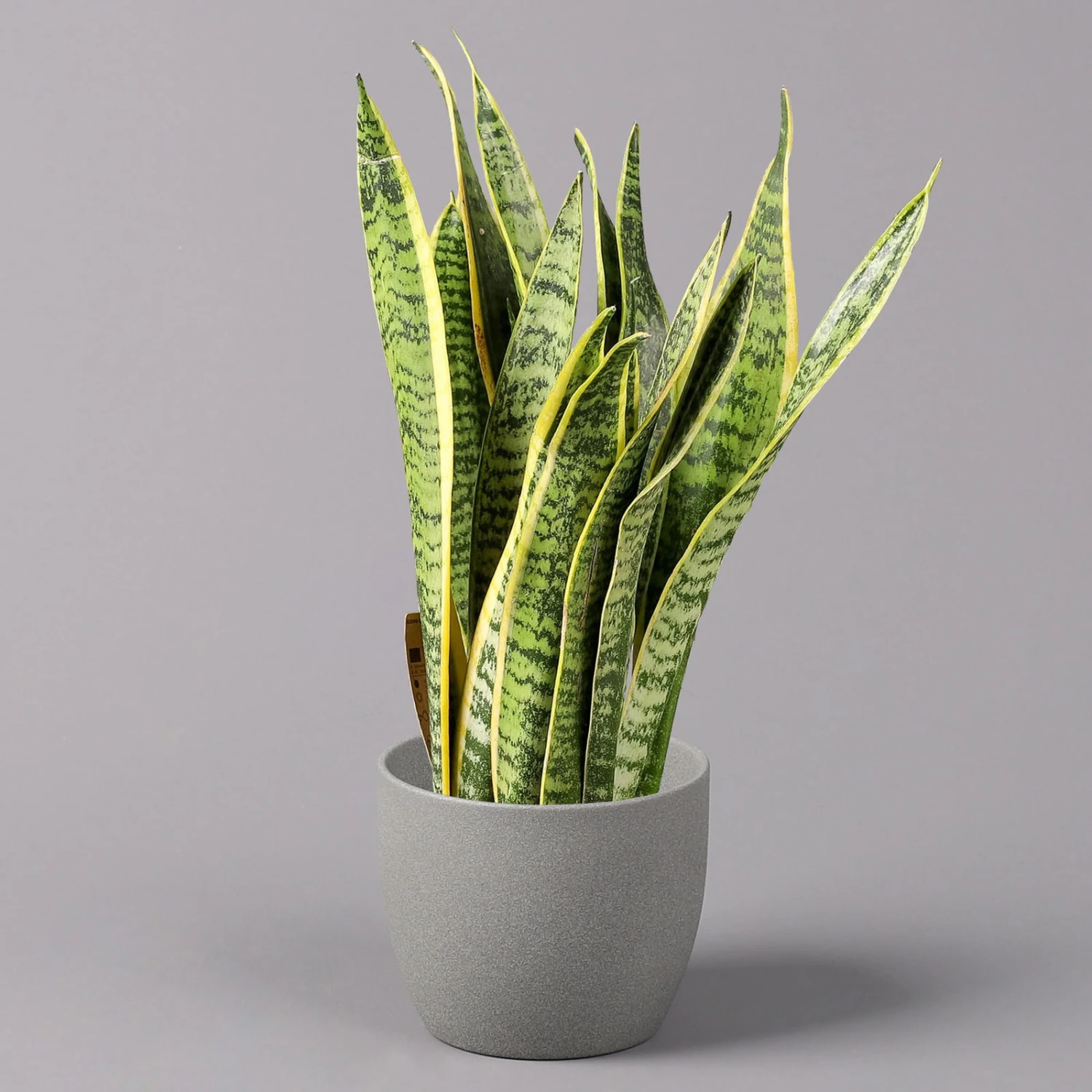 Der Bogenhanf (Sansevieria trifasciata ‚Laurentii‘) gilt als eine der robustesten und pflegeleichtesten Zimmerpflanzen überhaupt und ist auch unter den Namen ‚Sansevierie‘ oder ‚Schwiegermutterzunge‘ bekannt. Charakteristisch sind die riemenartig festen, fleischigen Blätter, deren Blattränder beidseitig gelbe Querstreifen aufweisen. Die grundständigen Blätter entspringen einem Rhizom und enden aufrecht in einer Spitze. Bei guter Pflege kann der Bogenhanf über einen Meter hoch werden.