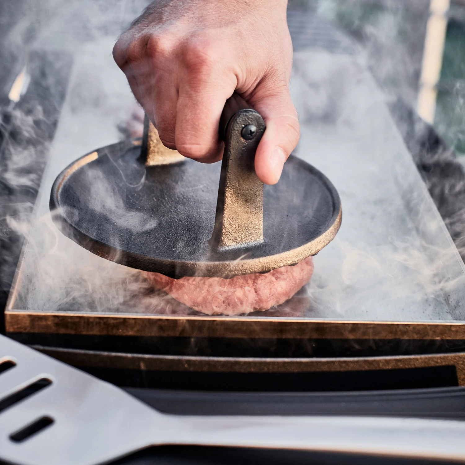 Lassen Sie sich von den ultimativen Röstaromen der Smashed Burger Pattys begeistern! Der „zerdrückte Burger“ gelingt Ihnen am einfachsten mit dieser massiven Burgerpresse aus emailliertem Gusseisen. Die Burgerpresse aus dem Hause Enders ist einfach zu handhalben, strapazierfähig und pflegeleicht.