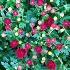 Die kleinen runden, gefüllten Korbblüten, blühen von Juli bis Oktober in einem herrlichen Bronzefarbton, Rot und in Gelb und setzen damit schöne Akzente in Ihrem Zuhause. Dem Namen multiflora (=mehrblütig) machen die Chrysanthemen alle Ehre, da sie mit einer großen Zahl an kleinen Blüte überzeugen.