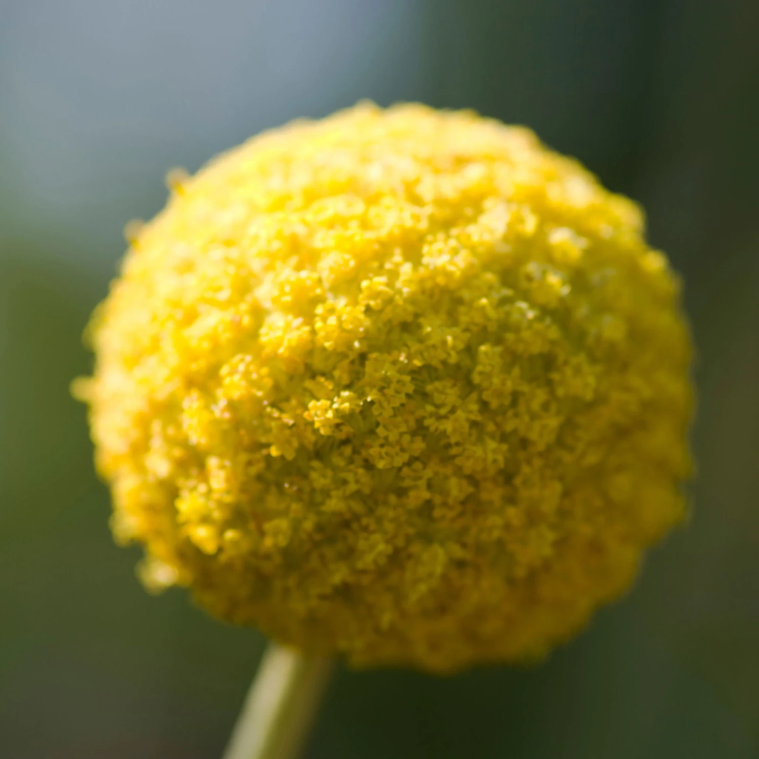 Die kleine, gelben Blüten stehen in einer Kugel auf einem langen Blütenstiel zusammen, daher der Name Trommelstöckchen. Die Craspedia blüht bis zum ersten Frost.