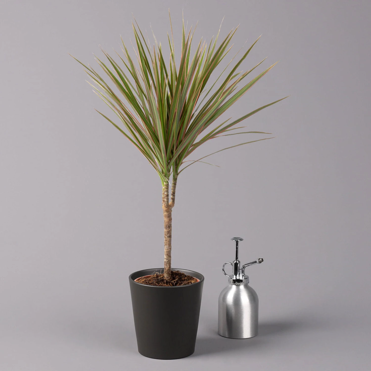 Jede Pflanze wird im Pflanztopf mit 13 cm Ø inkl. Keramiktopf Dallas in anthrazit matt geliefert.