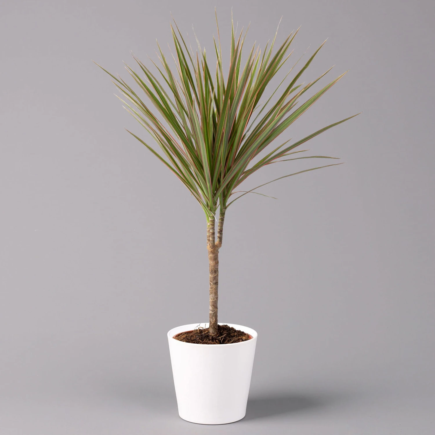 Er ist exotisch, auffällig gemustert und üppig geformt: Der Drachenbaum, auch Dracaena marginata ‚Bicolor‘ genannt. Diese Zimmerpflanze lässt sich an nahezu jeden Standort in Ihrer Wohnung oder im Büro aufstellen und schafft dadurch ein einzigartiges Ambiente. Nicht nur optisch wertet der Drachenbaum den Innenbereich auf, sondern filtert auch Schadstoffe aus der Luft. Fühlen Sie sich wie in der freien Natur und genießen Sie herrlich frische Luft! Die roten Streifen der schmalen Blätter sind zudem ein wahrer Hingucker. Nicht umsonst verdient diese Pflanze ihren Namen, denn das Muster erinnert an ein beeindruckendes Fabelwesen der chinesischen Kultur. Um diese Struktur zu erhalten, sollten Sie regelmäßig ein wenig Grünpflanzendünger zum Substrat geben. Tipp: Verfärben sich die Blätter und weisen gelbe Flecken auf, sollten Sie die Wasserzufuhr etwas reduzieren.
