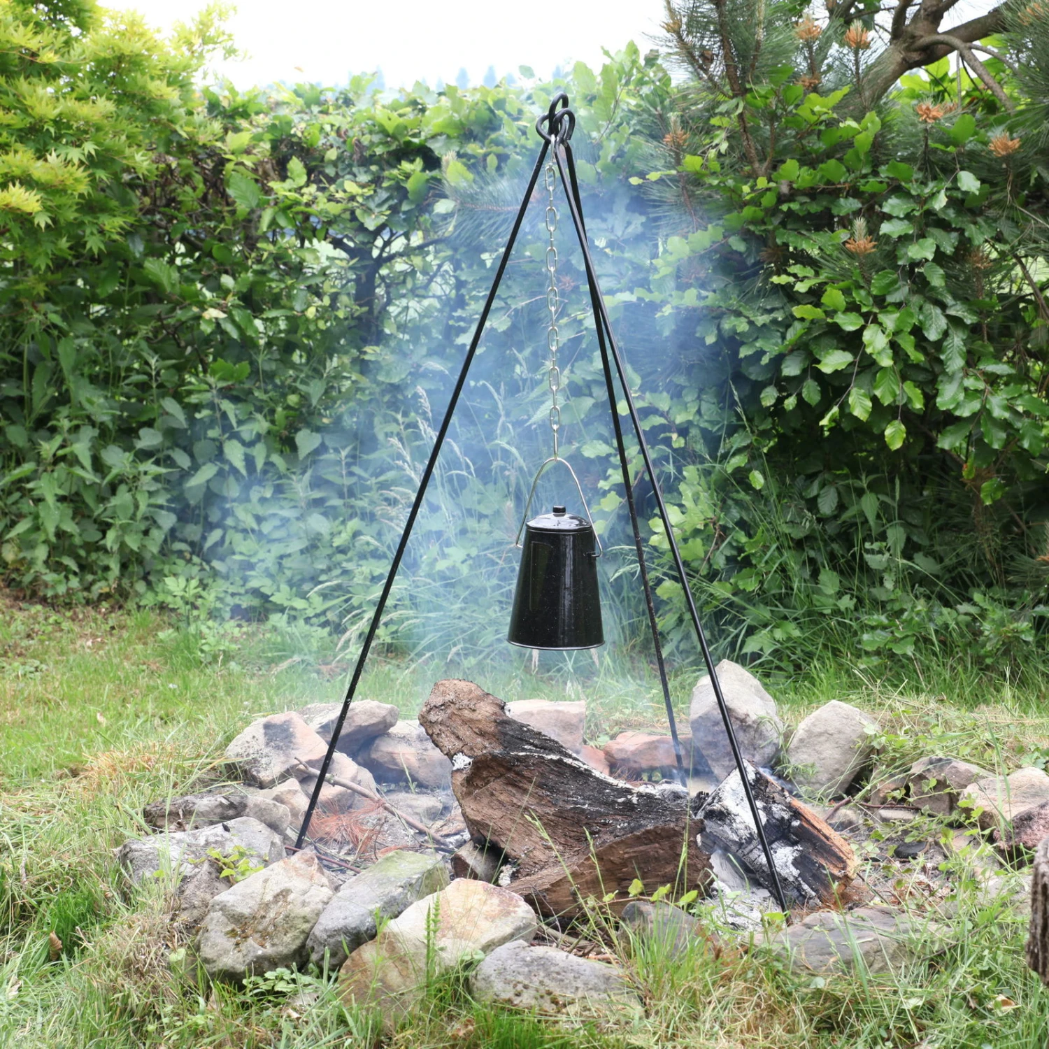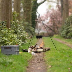 Kochen im Freien über dem Feuer ist ein Erlebnis, ein echtes Abenteuer. Dieses Dreibein mit Kette macht es möglich und schenkt Ihnen Flexibilität für das nächste Abenteuer. Bereiten Sie die köstlichsten Gerichte über dem offenen Feuer. Dank der verschiedenen Ketten kann sowohl ein Grillrost sowie ein Topf verwendet und aufgehängt werden. Der Dreifuß lässt sich schnell und einfach ohne jegliche Schrauben aufbauen und nach Gebrauch platzsparend aufbewahren.