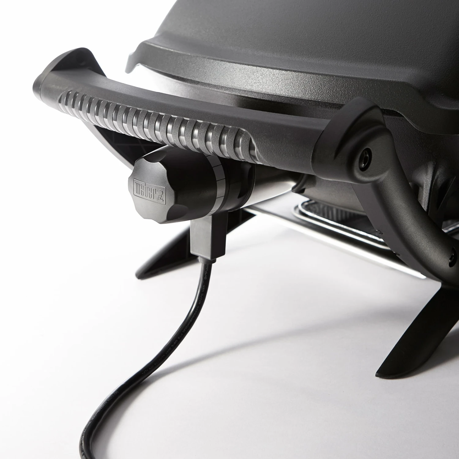 Weber® Q® Stand, Deckel und Gehäuse aus Aluguss, massiver, zweigeteilter Guss-Grillrost, große, selbstreinigende Heizspirale, 2.200 Watt, stufenlos verstellbarer Temperaturregler, abnehmbare Fettauffangschale, Glasfaserverstärkter Nylonrahmen