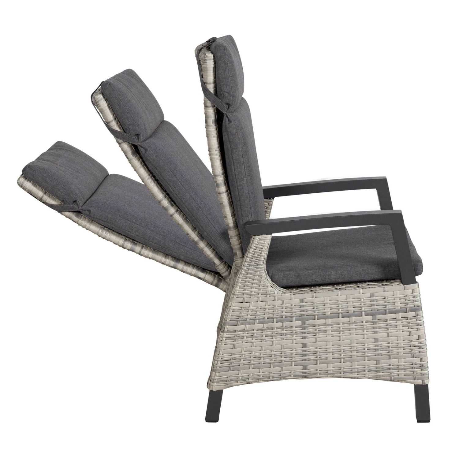 Geflechtsessel Bremen, Hellgrau/braun, Verstellbare Rückenlehne