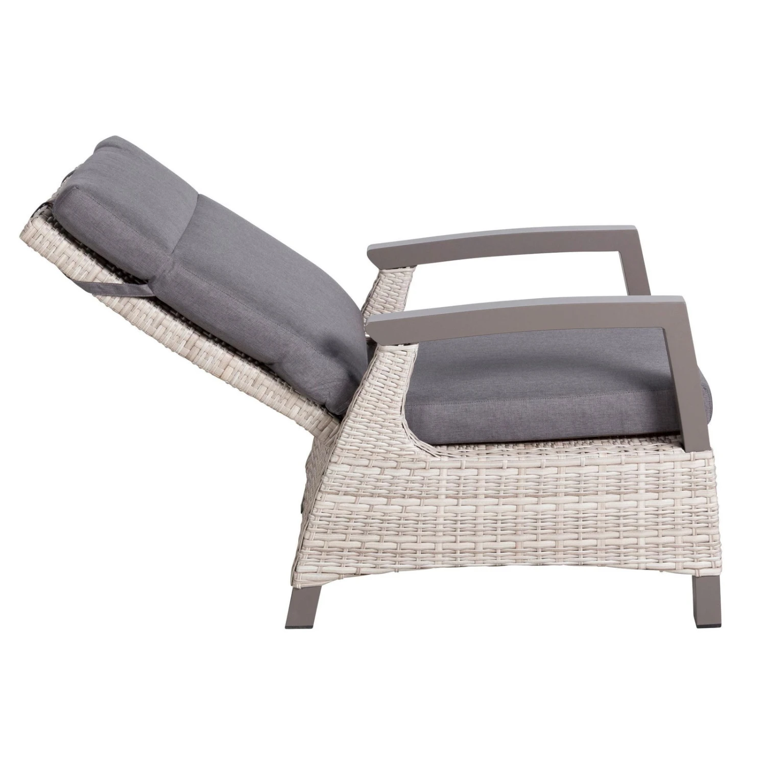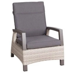 Für mehr Bequemlichkeit sorgt die dazu harmonisch passende Auflage aus Polyester und die stufenlos verstellbare Rückenlehne. Der moderne Sessel ist für den dauerhaften Einsatz im Außenbereich konzipiert und somit wetterfest und pflegeleicht.