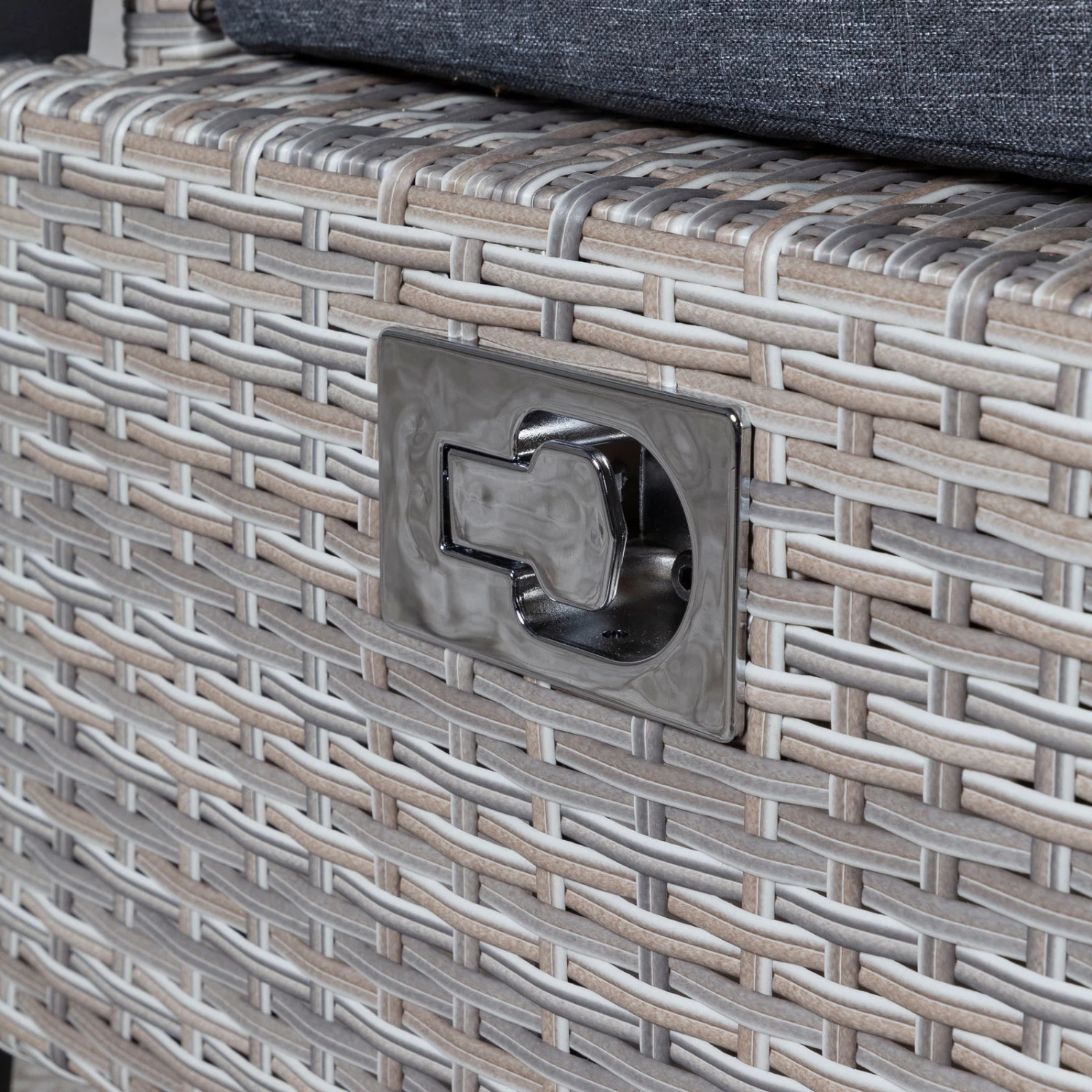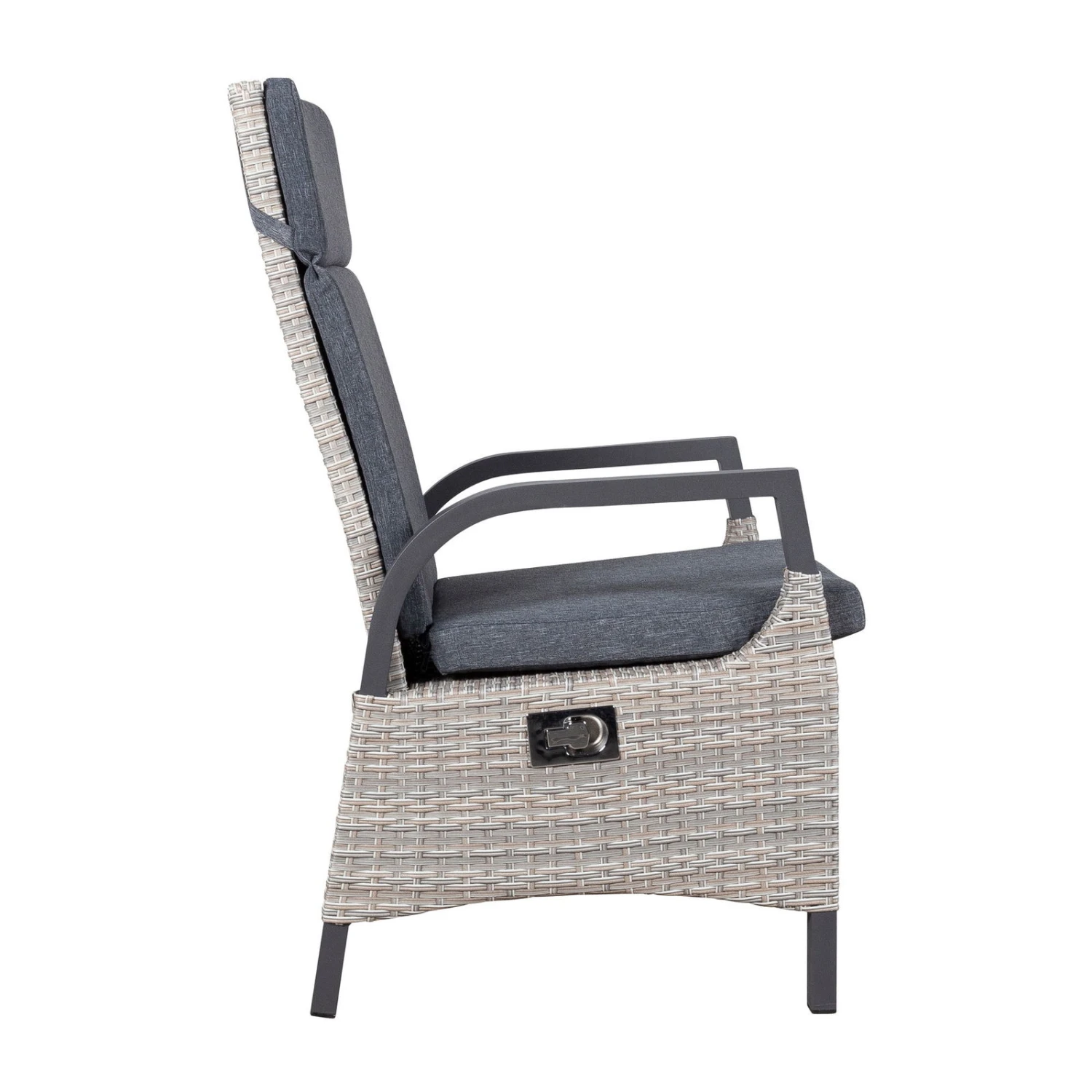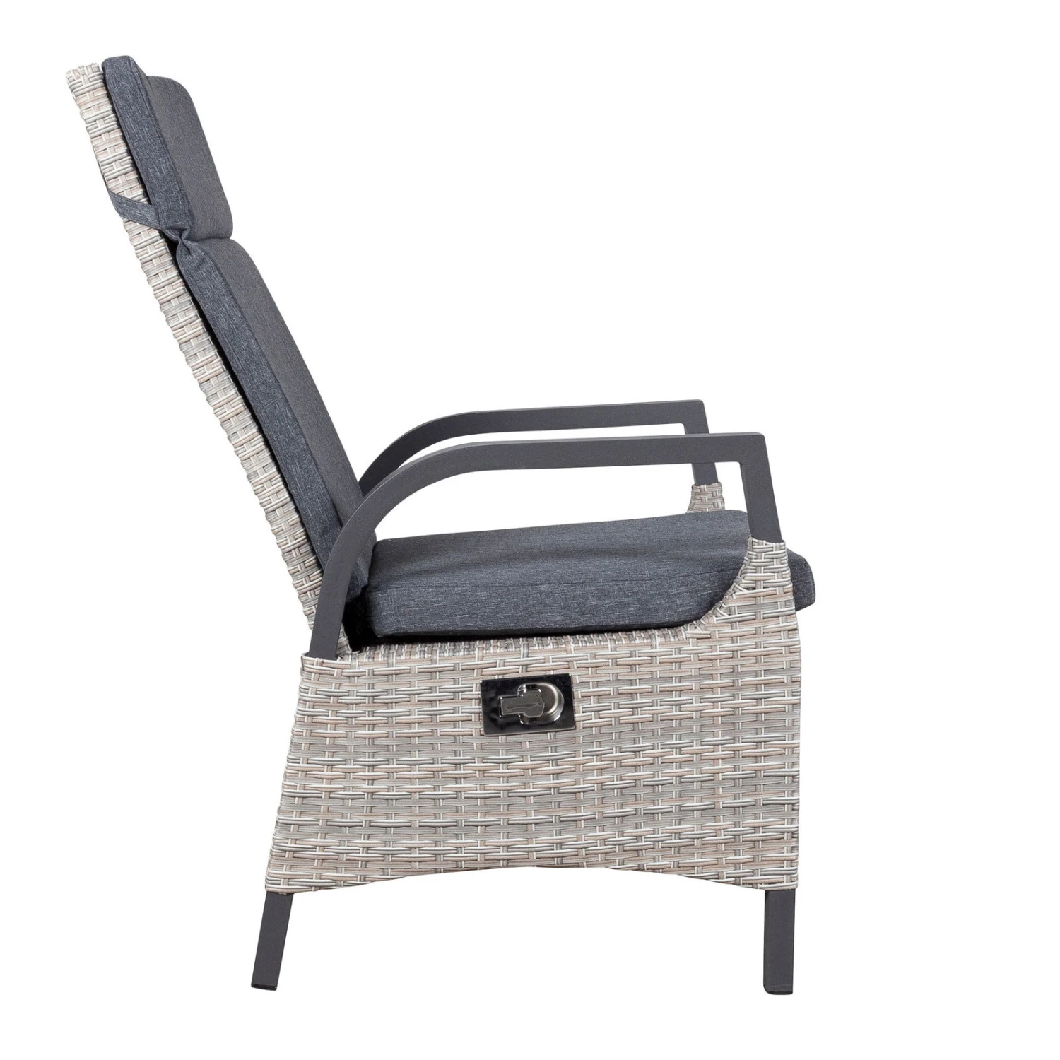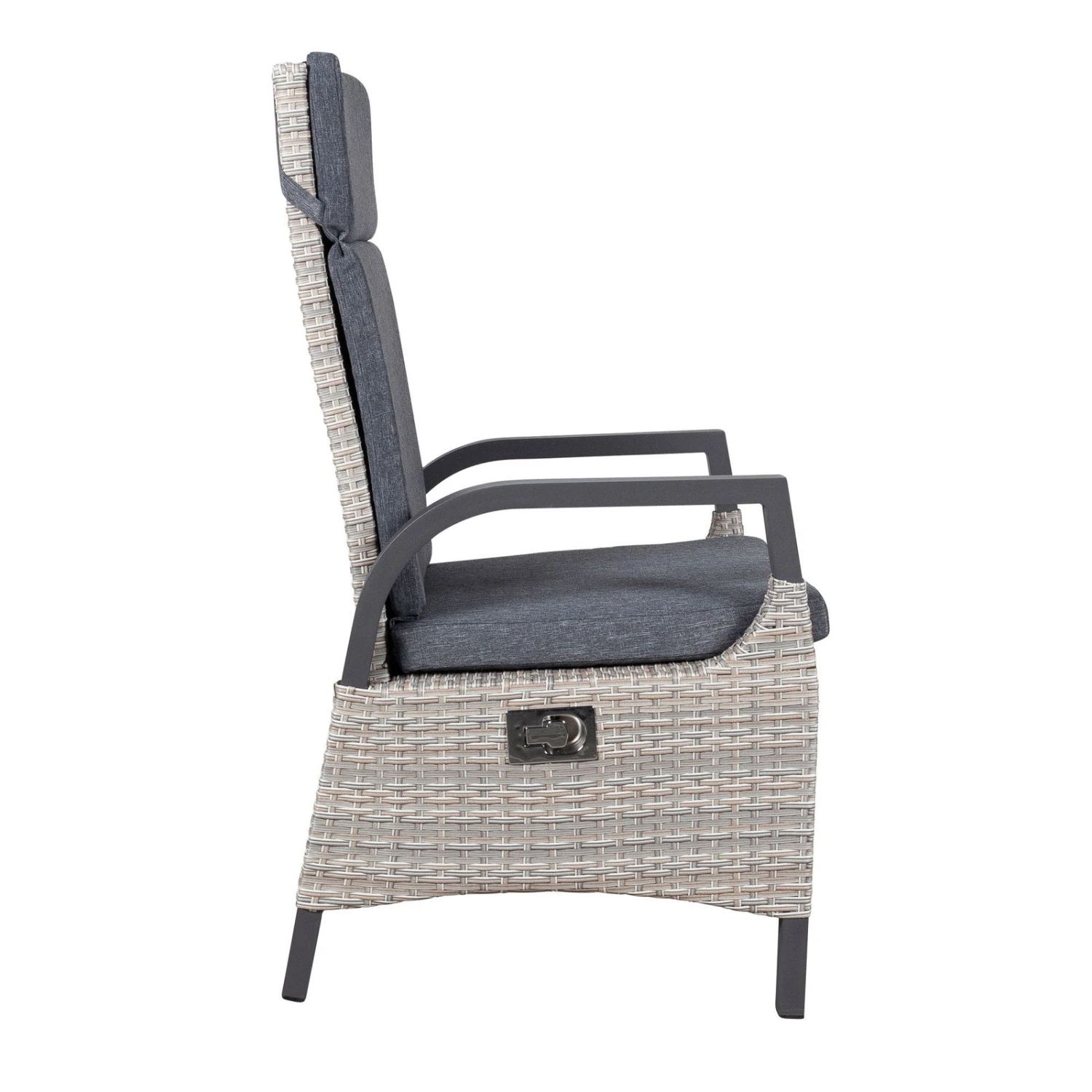 Dieser stilvolle Geflechtsessel aus Kunstrattan verleiht Ihrer Lounge-Landschaft eine zeitlos-rustikale Note. Der hochwertige Sessel ‚Westerland‘ aus Kunstrattangeflecht von Kölle ist Ihre komfortable, winterfeste und pflegeleichte Sitzgelegenheit auf der Terrasse oder dem Balkon, im Wintergarten oder auch im Wohnzimmer. Um es sich noch bequemer zu machen, können Sie die RĂĽckenlehne stufenlos verstellen.