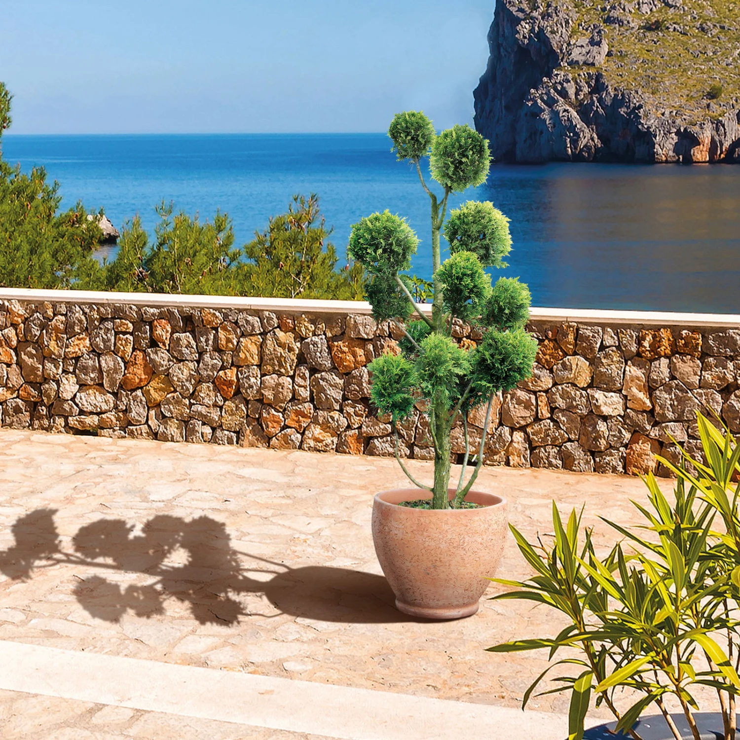 Verschönern Sie Ihren Garten, Balkon oder Terasse, mit diesem wunderschön mediterran anmütigen Formgehölz. Die Pflanze besticht durch ihren dekorativen gelben Austrieb, welcher mit zunehmender Wärme vergrünt.