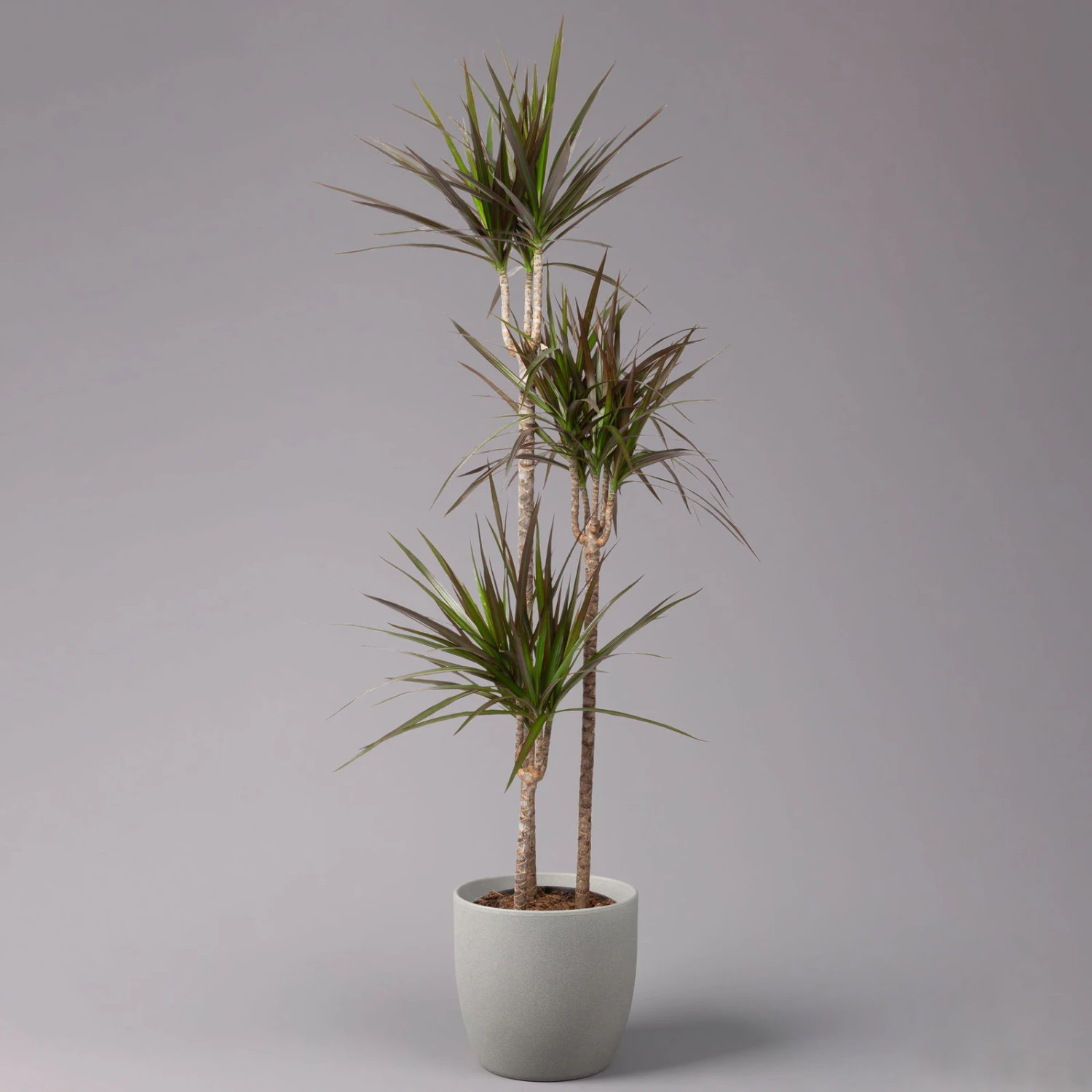 Mit einer filigranen Blattzeichnung und aparten Streifen in Dunkelrot ist die Dracaena marginata ‚Magenta‘ eine außergewöhnliche Erscheinung. Diese Zimmerpflanze lässt sich als Solitär oder als organisches Element der Raumbegrünung mit tropischem Flair gleichermaßen erfolgreich in Szene setzen. Wir empfehlen die Drachenbäume ganz besonders für den Einsatz in einem Büro, da diese Pflanze der Luft zahlreiche Schadstoffe entzieht. Aber auch als zuverlässiger Sauerstofflieferant wird die Dracaena ‚Magenta‘ hochgeschätzt. Dabei bleibt der Pflegeaufwand ausgesprochen gering, denn einem Drachenbaum reichen für eine harmonische Entwicklung sparsame Wassergaben und gelegentliches Düngen vollkommen aus. Sie dürfen Ihre Dracaena entweder im Halbschatten oder an einem hellen Standort pflegen. Vermeiden Sie jedoch unbedingt direkte Sonne (über den ganzen Tag), Zugluft und Staunässe.