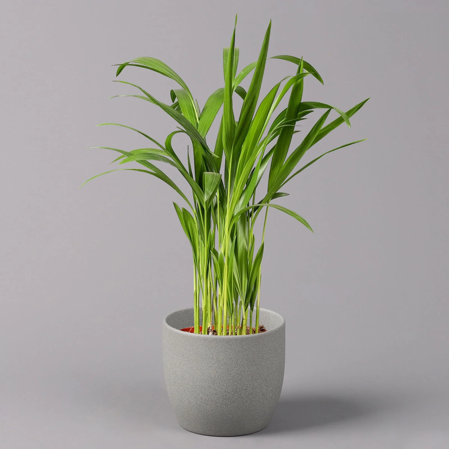 Die Goldfruchtpalme (Dypsis lutescens) ist ein anspruchsloses und dekoratives Palmengewächs von der afrikanischen Insel Madagaskar. Ihre Goldfruchtpalme fühlt sich an halbschattigen Standorten wohl und ist vor direkter Sonneneinstrahlung zu schützen. Pflegen Sie die Dypsis lutescens in den Innenräumen bei Temperaturen über 15 Grad Celsius. Für einen beheizten Wintergarten ist diese Zimmerpflanze genauso wie für Ihre Wohnküche oder Diele die richtige Wahl. Von April bis Oktober legt die Goldfruchtpalme einen hohen Wasserbedarf an den Tag, in der Winterzeit dürfen Sie die Wassergaben reduzieren. Am besten eignet sich zum Gießen lauwarmes und weiches Wasser, auch Sprühbäder tun Ihrer Zierpalme gut. Die Goldfruchtpalme verbessert nachweislich das Raumklima, indem sie der Luft mehrere Giftstoffe entzieht.