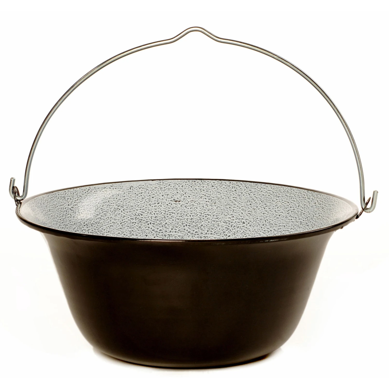Dieser emaillierte Gulaschkessel hat einen Durchmesser von etwa 43 cm und ein Fassungsvermögen von etwa 10 Litern. Er wird nach traditionellem Verfahren hergestellt und ist nach dem Gebrauch einfach zu reinigen.
