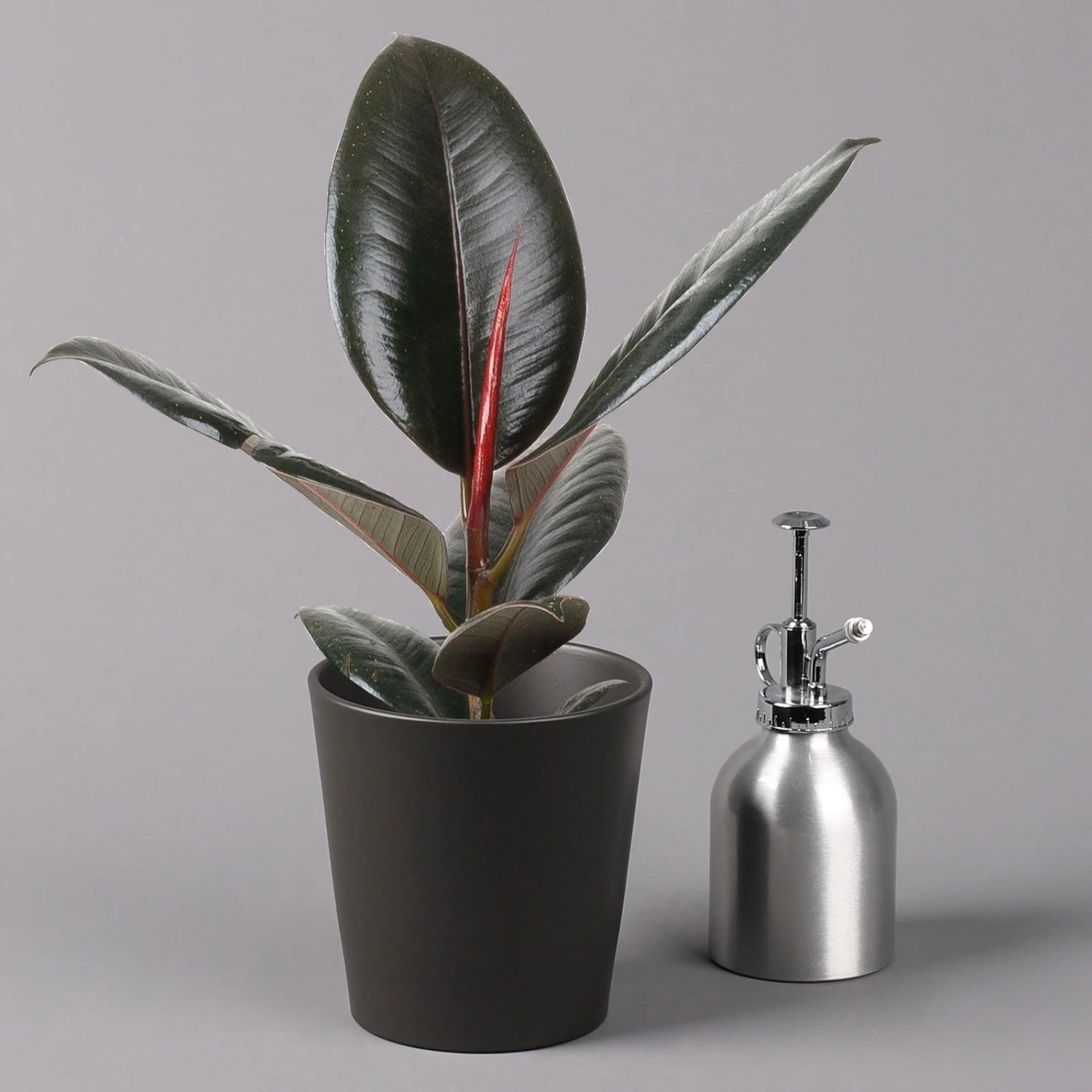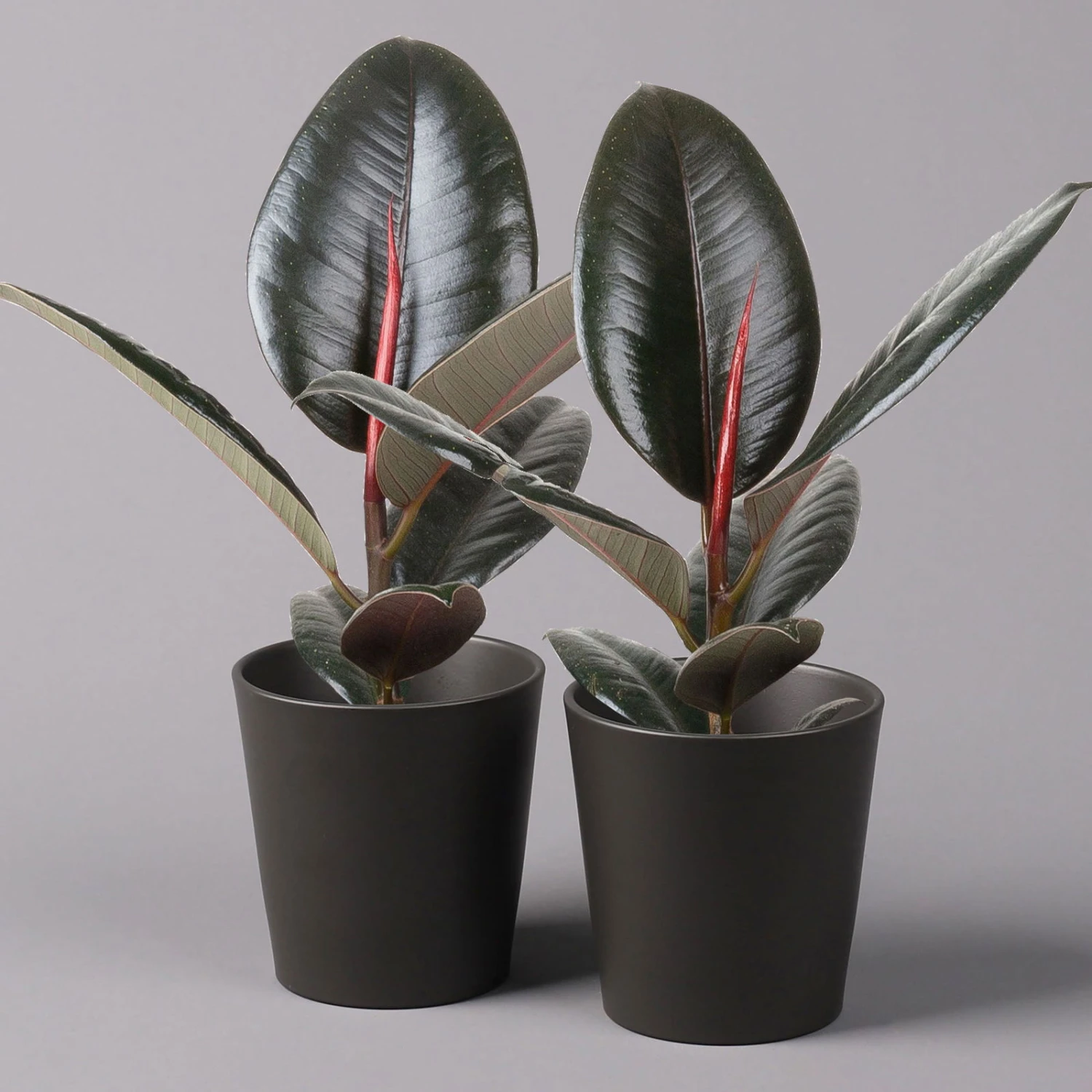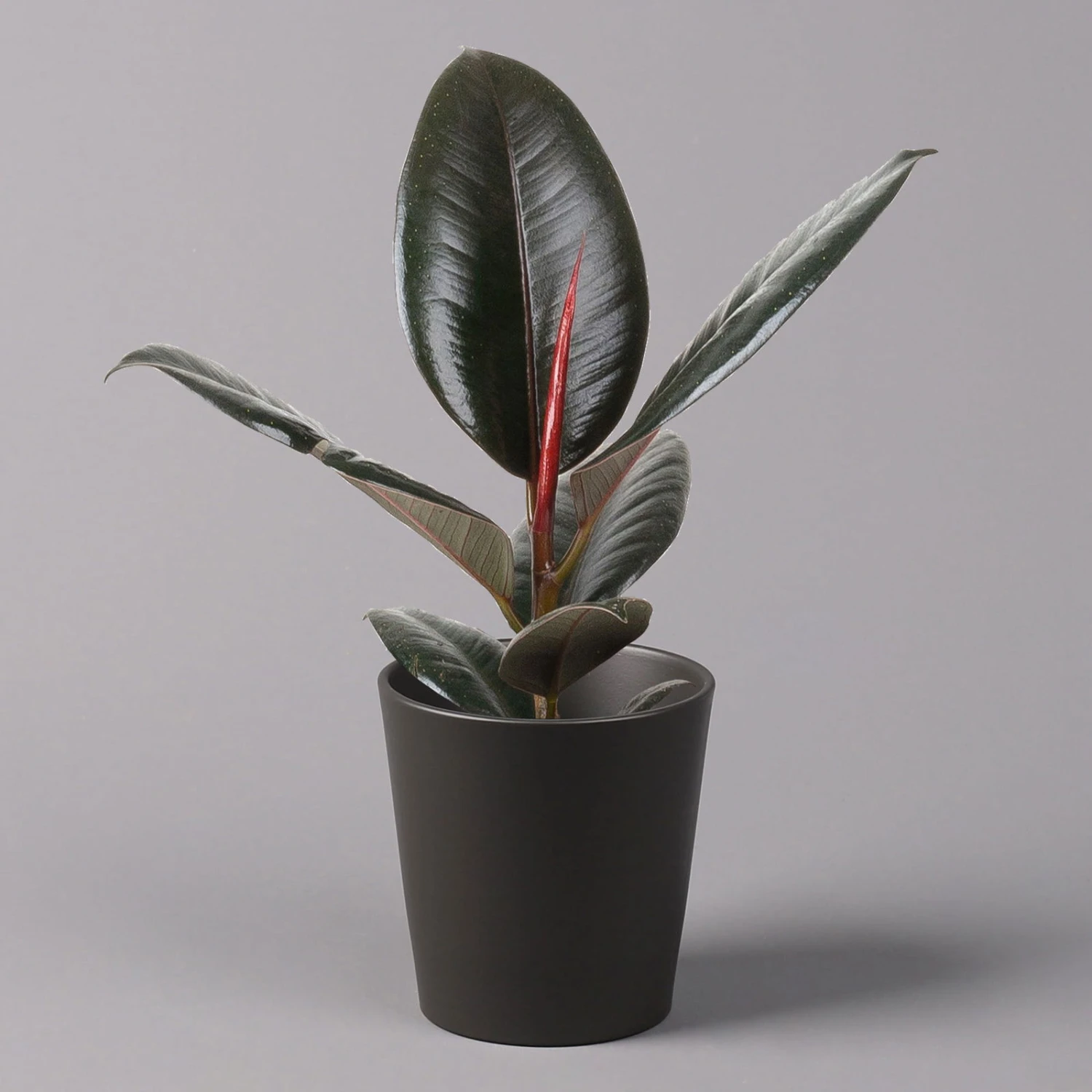 Der Ficus elastica ‚Robusta‘ begeistert mit großen, ledrigen Blättern und gilt als besonders widerstandsfähig. Der anspruchslose Gummibaum, so der deutsche Name dieser Trendpflanze, lässt sich mit gleichem Erfolg zur Begrünung von Büros, Arztpraxen oder Wohnräumen einsetzen. Ein Ficus ist eine richtige Wohlfühlpflanze, da dieses Tropengewächs der Luft unterschiedliche Schadstoffe entzieht und somit für ein besseres Raumklima sorgt. An den Standort stellt der Ficus elastica ‚Robusta‘ keine allzu hohen Ansprüche, denn der Gummibaum gibt sich sowohl mit hellen als auch mit halbschattigen Lagen durchaus zufrieden. Problematisch können neben einem Überfluss an direkter Sonne noch Zugluft und Staunässe sein. Auf Wunsch dürfen Sie Ihren Ficus gerne in der warmen Jahreszeit an einem windgeschützten Standort im Freien pflegen. Bitte beachten Sie, dass der Milchsaft des Gummibaumes giftig ist.