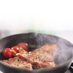 Daneben überzeugt die runde Gusseisenpfanne mit einer praktischen Handhabung. Mit einem Griff und 2 Ausgüssen ausgestattet, gelingt das Grillen und Braten mühelos. Über die Ausgüsse der Pfanne kann überschüssiges Fett abgegossen werden. Da die Gusseisenpfanne bereits eingebrannt ist, können Sie direkt mit dem Grillen beginnen. Nach der Nutzung empfehlen wir, die Pfanne noch kurz einzuölen – dann steht einem weiteren Grillerlebnis nichts mehr im Wege.