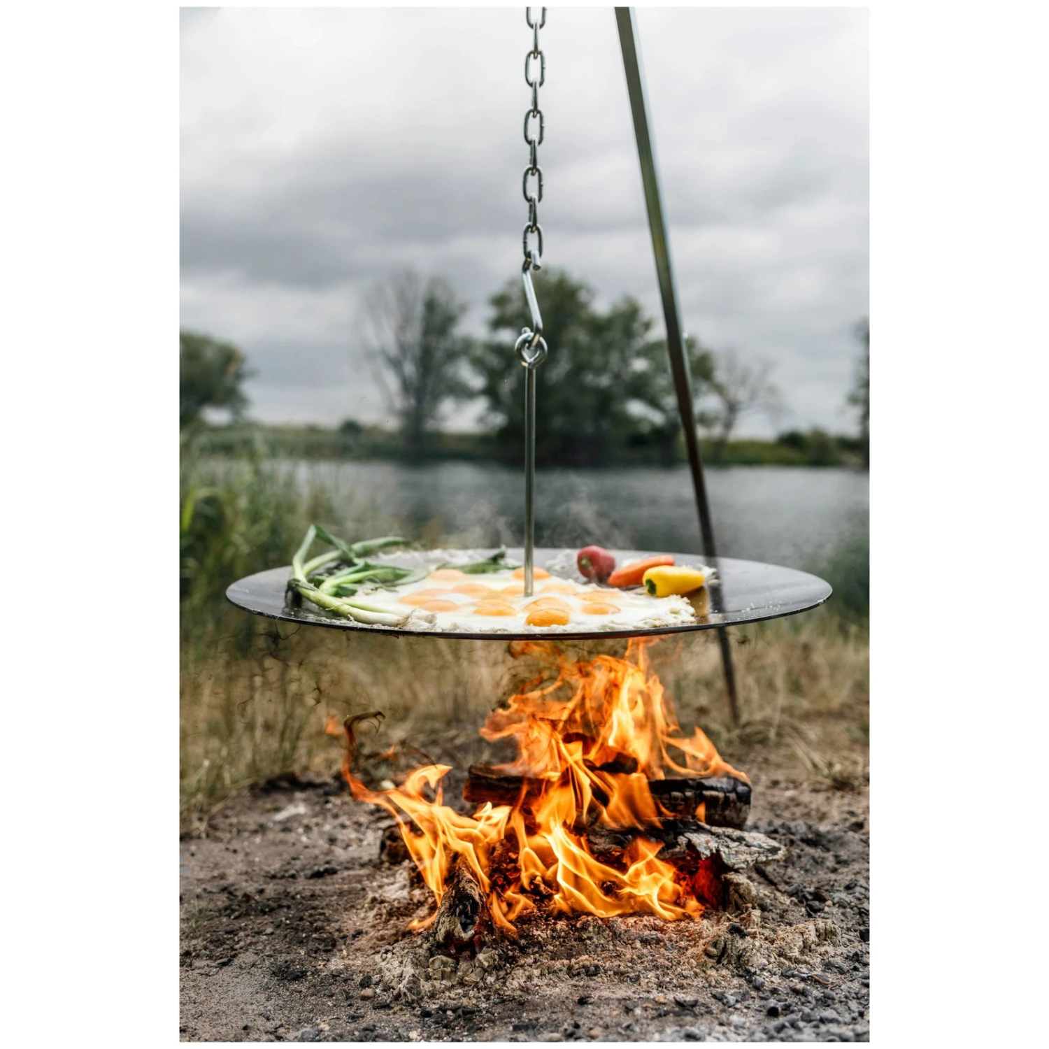 Einfach mit ein paar Handgriffen diese Hängeschale von Petromax am Dreibein des gleichen Herstellers befestigen und leckere Speisen auf ursprüngliche Art über offenem Feuer zubereiten. Die Schale heizt sich zügig auf und überzeugt durch eine gleichmäßige Hitzeverteilung. Zum Steuern der Wärmezufuhr ändern Sie die Länge der Aufhängekette.
