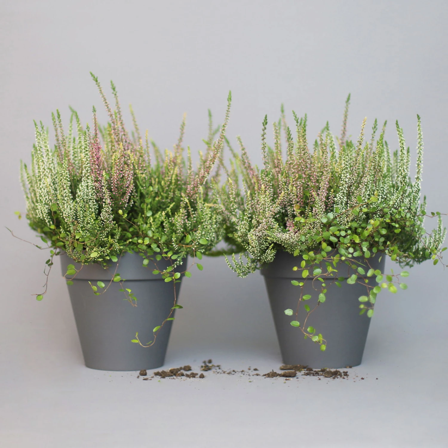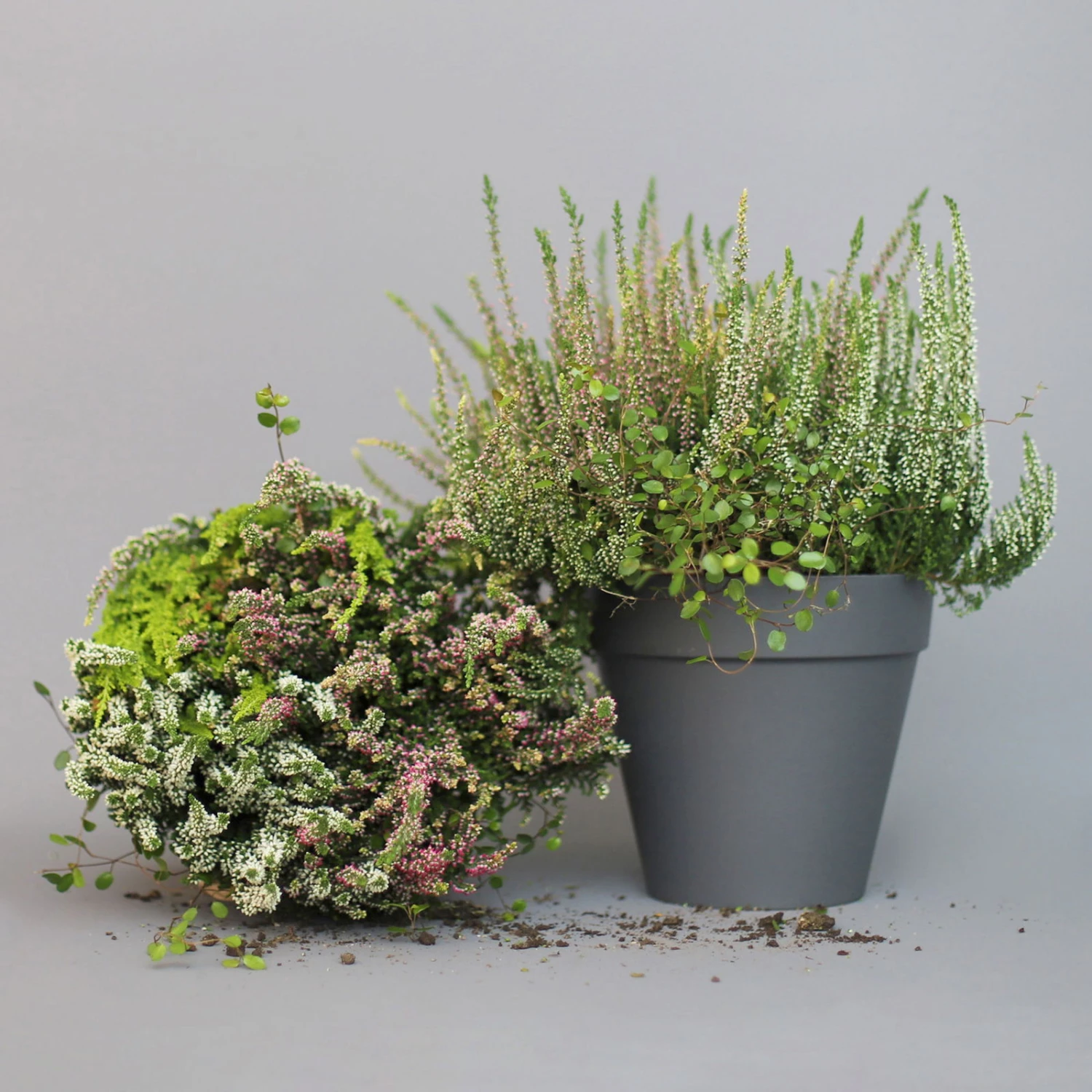 Zur Bepflanzung von Kübeln, Balkonkästen und zur Grabbepflanzung eignet sich dieses Trio aus Calluna vulgaris, Mühlenbeckia und Baumheide sehr gut, ohne geeignete Pflanzpartner suchen zu müssen.