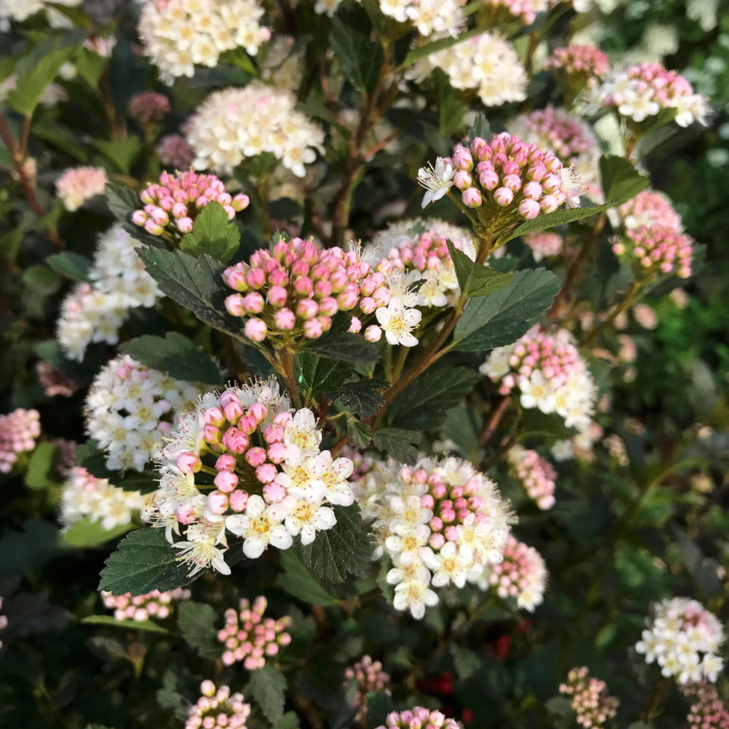 Die kleine rotblättrige Blasenspiere Physocarpus opulifolius ‚Tiny Wine’® bleibt mit ihren Wuchshöhen von 90 bis zu 150 Zentimetern im Vergleich zu vielen anderen Zuchtformen kompakt und eignet sich ausgezeichnet zur Pflege in Kübeln auf Ihrer Terrasse oder Ihrem Balkon. Die Blasenspiere überrascht durch ihre effektvolle Laubfarbe in Dunkelrot und begeistert im Juni und Juli mit tollen Doldenblüten in rosa-weiß. Ihre rotblättrige Blasenspiere ist gut schnittverträglich. Der richtige Standort für diese Laubgehölz ist sonnig, mit einem durchlässigen und nährstoffreichen Substrat. Die kleine rotblättrige Blasenspiere ‚Tiny Wine’® ist winterhart, bei der Pflege im Kübel ist ein Frostschutz mit Vlies empfehlenswert.