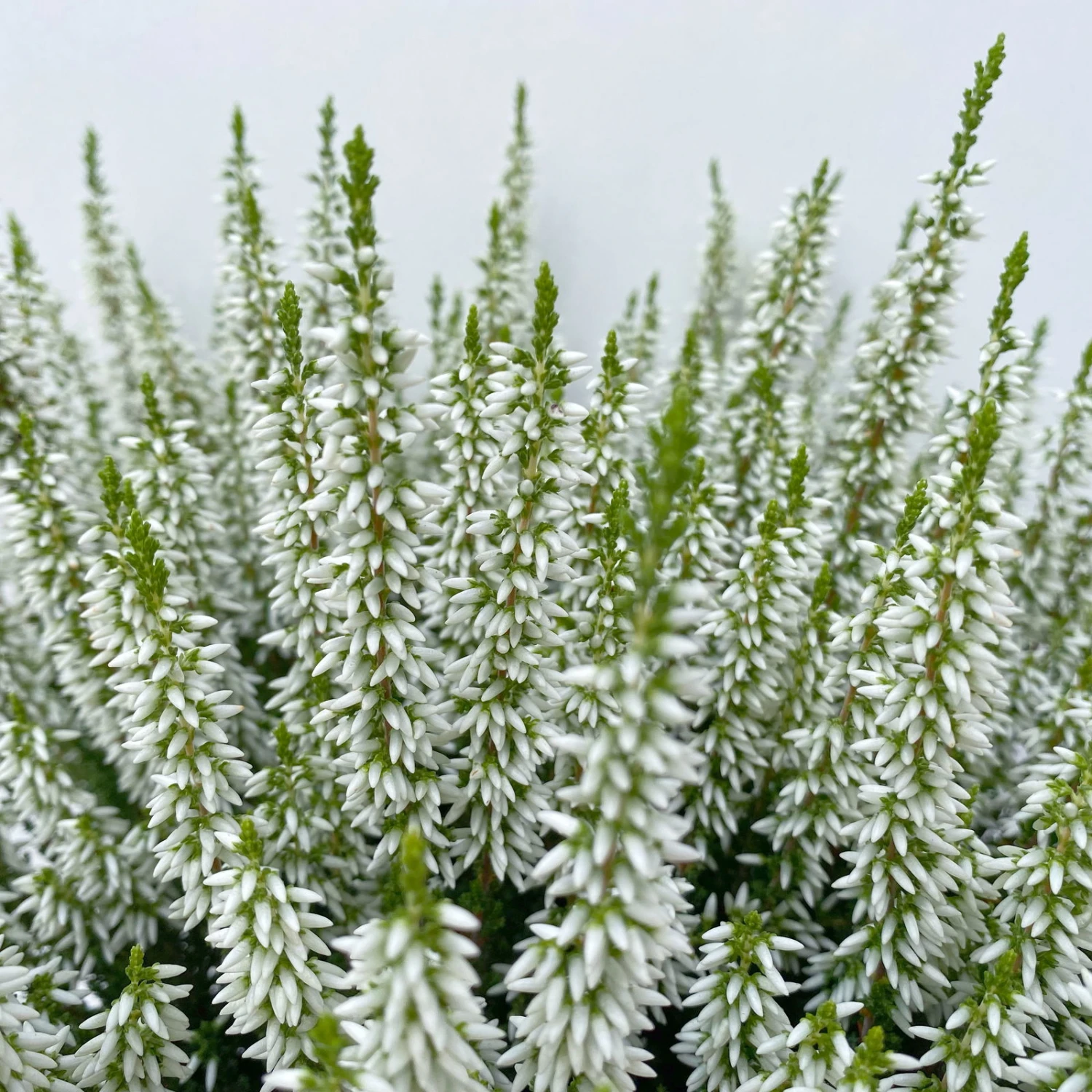 Die kleinen Blüten erscheinen bei der Knospenheide nur, wie der Name erahnen lässt, als Knospen und blühen nicht auf. Dadurch kann ihnen weder Wind noch Regen etwas anhaben und die farbigen Knospen bleiben bis in den Winter hinein schön. Die Calluna bringt durch die Farbe weiß Abwechslung in Ihre Bepflanzung.