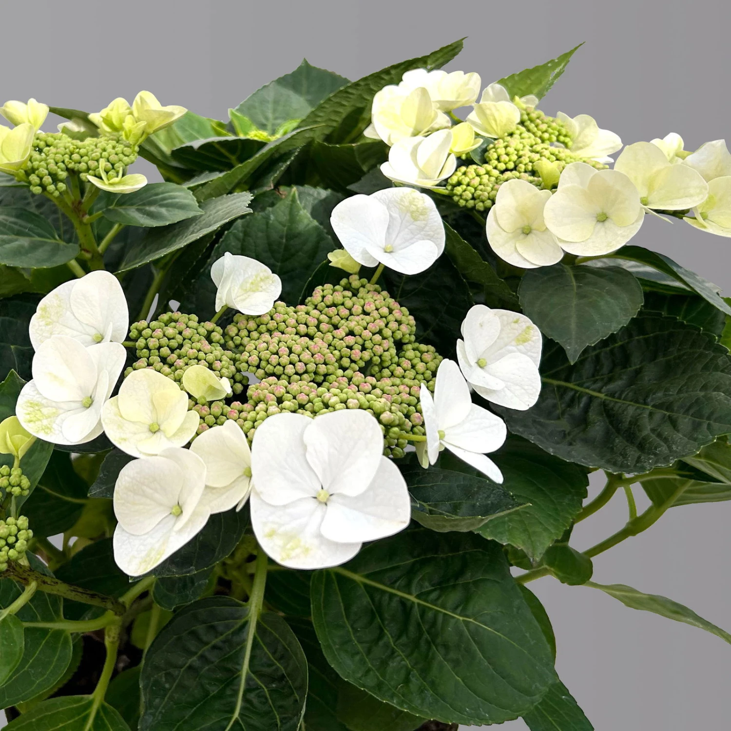 Die zauberhaften Tellerhortensie der Marke Kölle zeigt sich in einem ansprechenden Weiß. Der attraktive Sommerblüher eignet sich als Kübelpflanze und punktet insbesondere durch die lange Blütezeit. Sie kommt beispielsweise auf der Terrasse, dem Balkon oder im Eingangsbereich Ihres Hauses langfristig zur Geltung. Die Hortensie in strahlendem Weiß benötigt keine weitere Pflanze um gleich aufzufallen, sondern begeistern mit ihren im Durchmesser bis zu 20 Zentimeter großen Blüten. Schon seit Ende des 18. Jahrhunderts ist die ursprünglich aus Japan stammende Hydrangea macrophylla in Europa beliebt und heutzutage aus fast keinem Garten mehr wegzudenken. Bei uns können Sie Ihre weiße Lieblings-Tellerhortensie kaufen und zum individuellen Gartenhighlight machen. Vertrauen Sie auf die bewährte Marke Kölle.