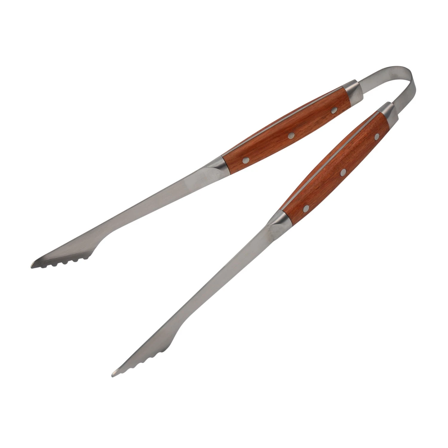 Diese Kölle Grillzange zeichnet sich durch ihre hochwertige Aufmachung aus. Die Greifer aus Edelstahl sind dabei ebenso schick wie praktisch. Durch die stabile Konstruktion aus gewinkelten Greifplatten im Haltebereich und die Platzierung von Greifzähnen für Fleisch & Co. ist das Auflegen und Wenden von Grillgut ein Kinderspiel. So macht das Grillen richtig Spaß und es bleibt nebenbei genügend Zeit, sich um Gäste zu kümmern oder einfach das Erlebnis zu genießen. Neben den Edelstahlgreifern sorgt auch der rotbraune Holzgriff aus Palisanderholz für eine gute Stabilität dieses Grillbestecks. Der Grillgutwender besitzt die Maße (L/B/H) ca. 40,5 x 2,7 x 3 cm. Kleiner Bonus: Diese moderne Zange von Kölle darf nach dem Grillen sogar in die Spülmaschine.