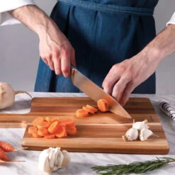 Das Servier- und Schneidebrett, TRAMONTINA CHURRASCO aus der Serie Landhaus ist aus hochwertigem, strapazierfähigem Teakholz hergestellt und bei der Zubereitung von Speisen genauso wie beim Servieren unersetzlich. Dieses Schneide- und Servierbrett ist leicht zu reinigen und platzsparend aufzuhängen.