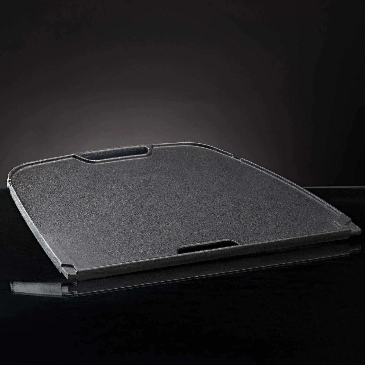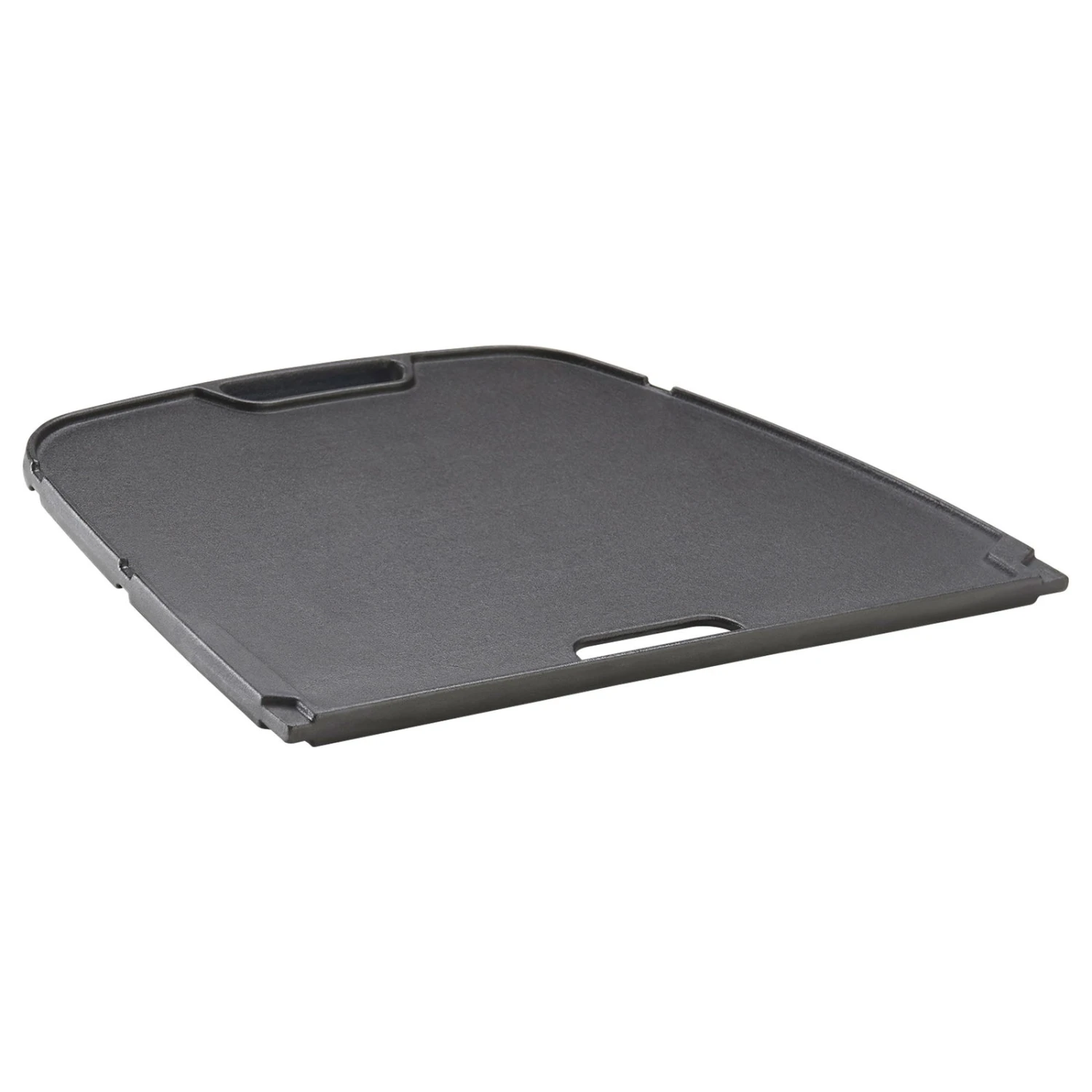Die Grillplatte aus Gusseisen erlaubt die Zubereitung von Bacon, Spiegelei oder Pancakes und Co. Einfach gegen ein Grillrost austauschen – fertig.