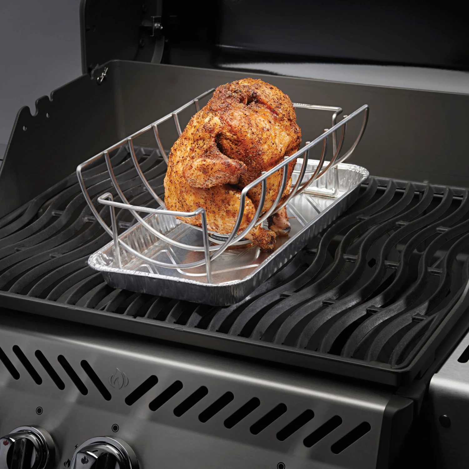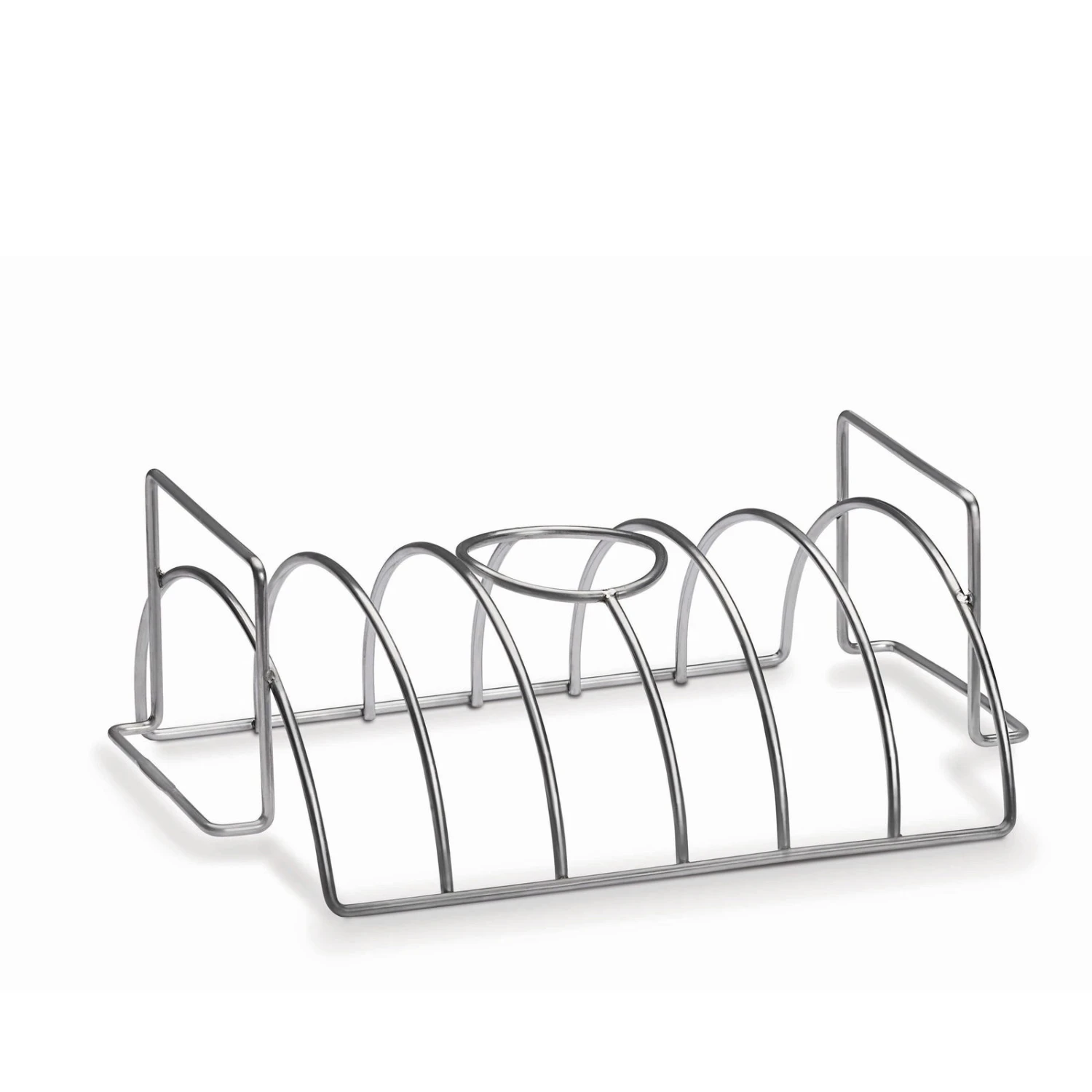 Multifunktionaler Braten- und Ribshalter & Bierdosenhähnchen-Korb aus Edelstahl, spülmaschinenfest. Napoleon® Alutasse # 62008 passt genau darunter, 5 cm x 20 cm x 13 cm