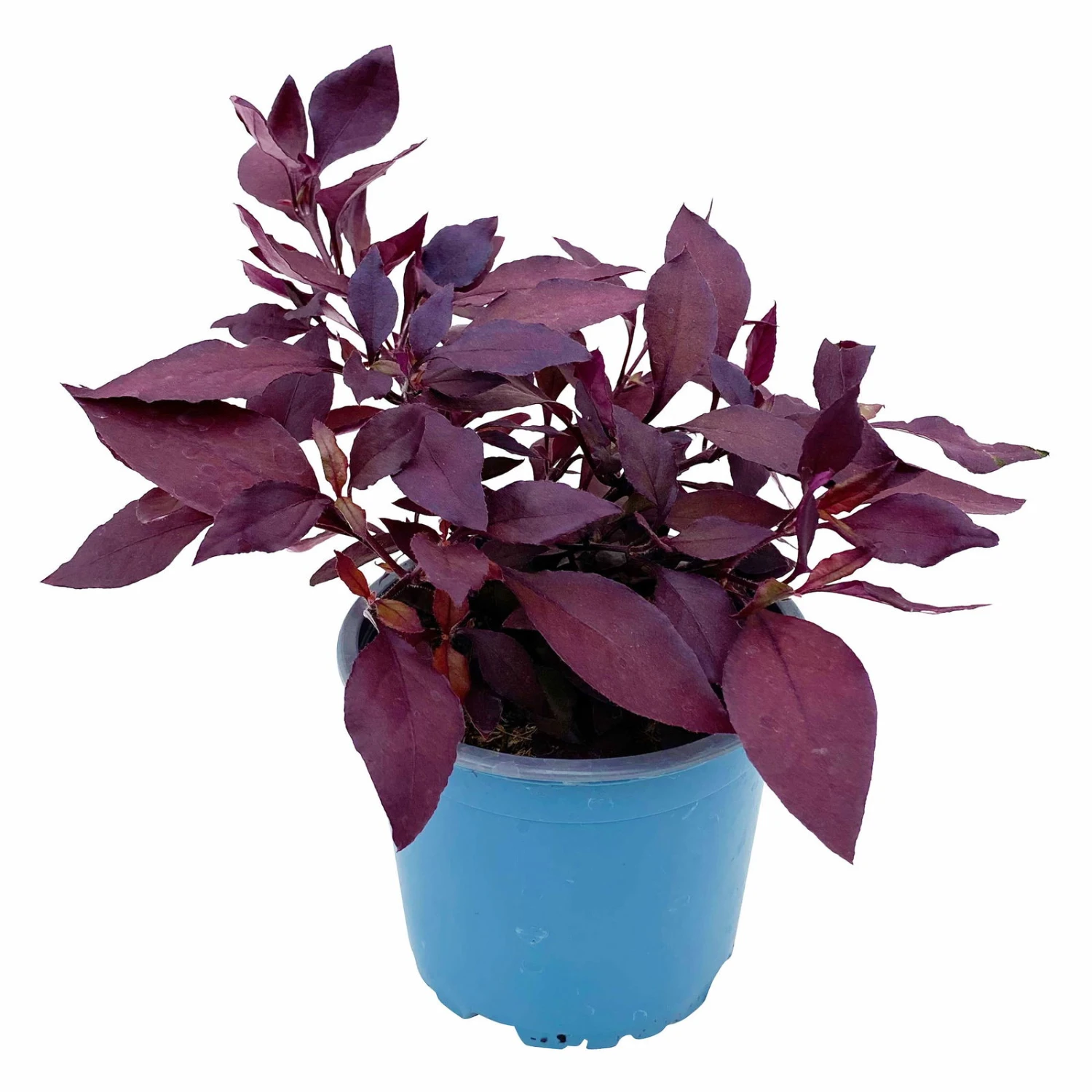 Der Papageienstrauch Alternanthera ‚Little Romance‘ ist in Ihrem Garten oder Balkonkasten ein Hingucker der besonderen Art: Diese erstaunliche Pflanze begeistert nämlich mit zweifarbigen, dekorativen Blättern. Während die Blattoberseite sich in Dunkelviolett präsentiert, erscheint die Unterseite in kraftvollem Rubinrot. Sie können mit gleichem Erfolg den einjährigen, kleinbleibenden Papageienstrauch ‚Little Romance‘ zum Bestücken Ihrer Blumenbeete und als Balkonpflanze einsetzen. An einem sonnigen und halbschattigen Standort fühlt sich die Alternanthera wohl. Eine weitere Voraussetzung für die erfolgreiche Kultur ist ein lockeres, nährstoffreiches und gleichmäßig feuchtes Substrat ohne Staunässe. Der Papageienstrauch ist eine hervorragende Blattschmuckpflanze und lässt sich mit Sommerblumen oder sommerblühenden Stauden zu farbenfrohen Kompositionen kombinieren. Aber auch in Kombination mit Besenheide, Chrysanthemen oder Silberblatt ist er eine schöner Blickfang.