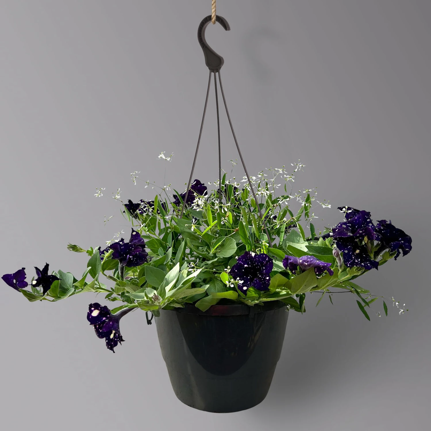 Petunie ‚Mystery Sky‘ & Schneewolke Dunkelblau-weiß, Ampeltopf-Ø 25/27 Cm