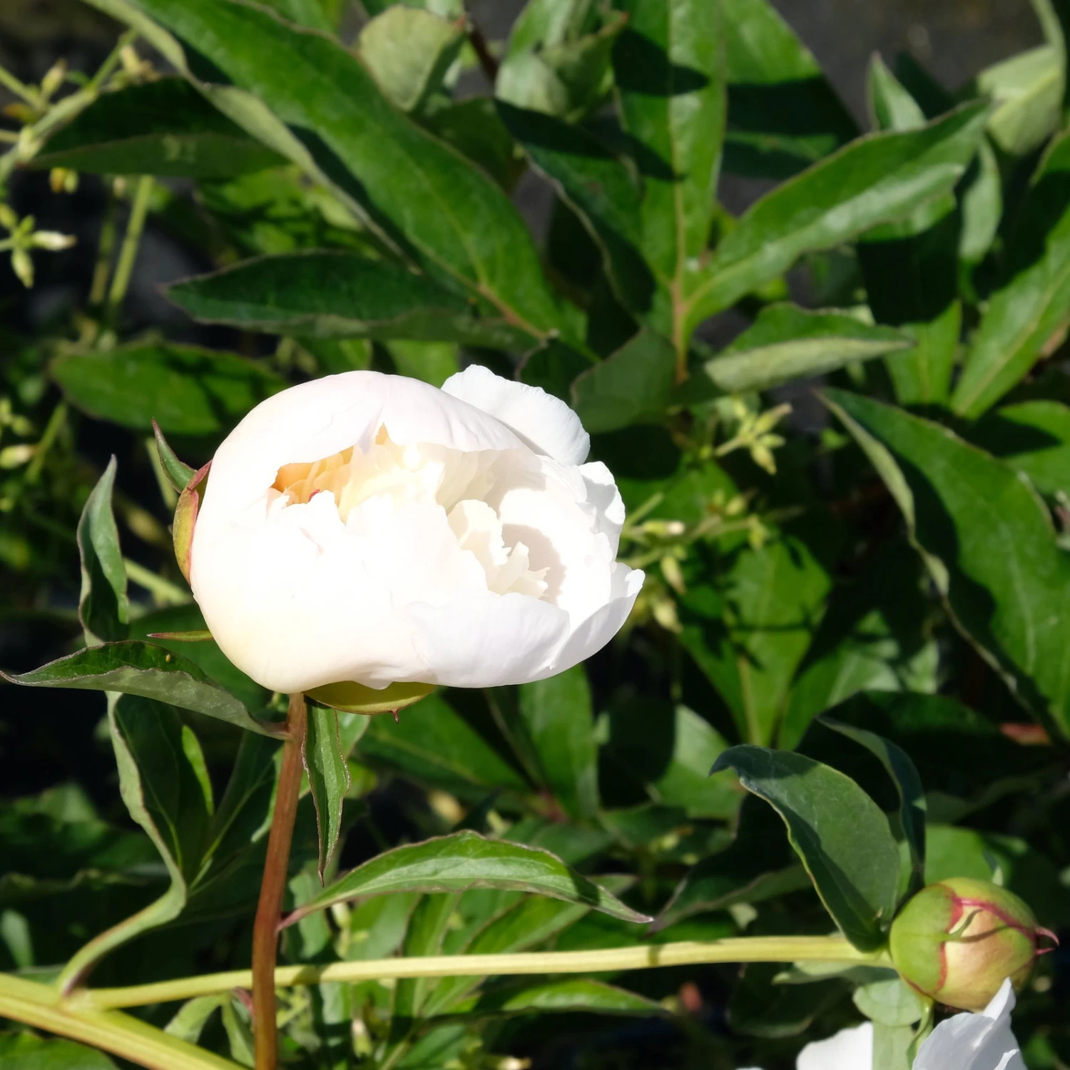 Wir empfehlen, eine Stütze gegen das Abknicken der schweren, gefüllten Blüten zu verwenden. Schneiden Sie abgeblühte Blüten regelmäßig zurück, damit die Pflanze genug Kraft zum Ausbilden neuer Blüten hat.