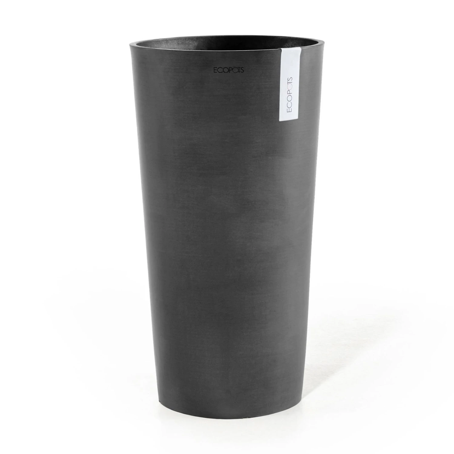 Das Pflanzgefäß ‚Amsterdam Midi‘ in elegantem Dunkelgrau sieht nicht nur trendy aus, sondern besteht auch aus einem zeitgemäß nachhaltig hergestellten, recycelten Stein- und Kunststoffpulver. Das Material verleiht dem Pflanztopf ‚Amsterdam Midi‘ von Ecopots eine angesagte Betonoptik und ist außerdem bruch- und frostfest.