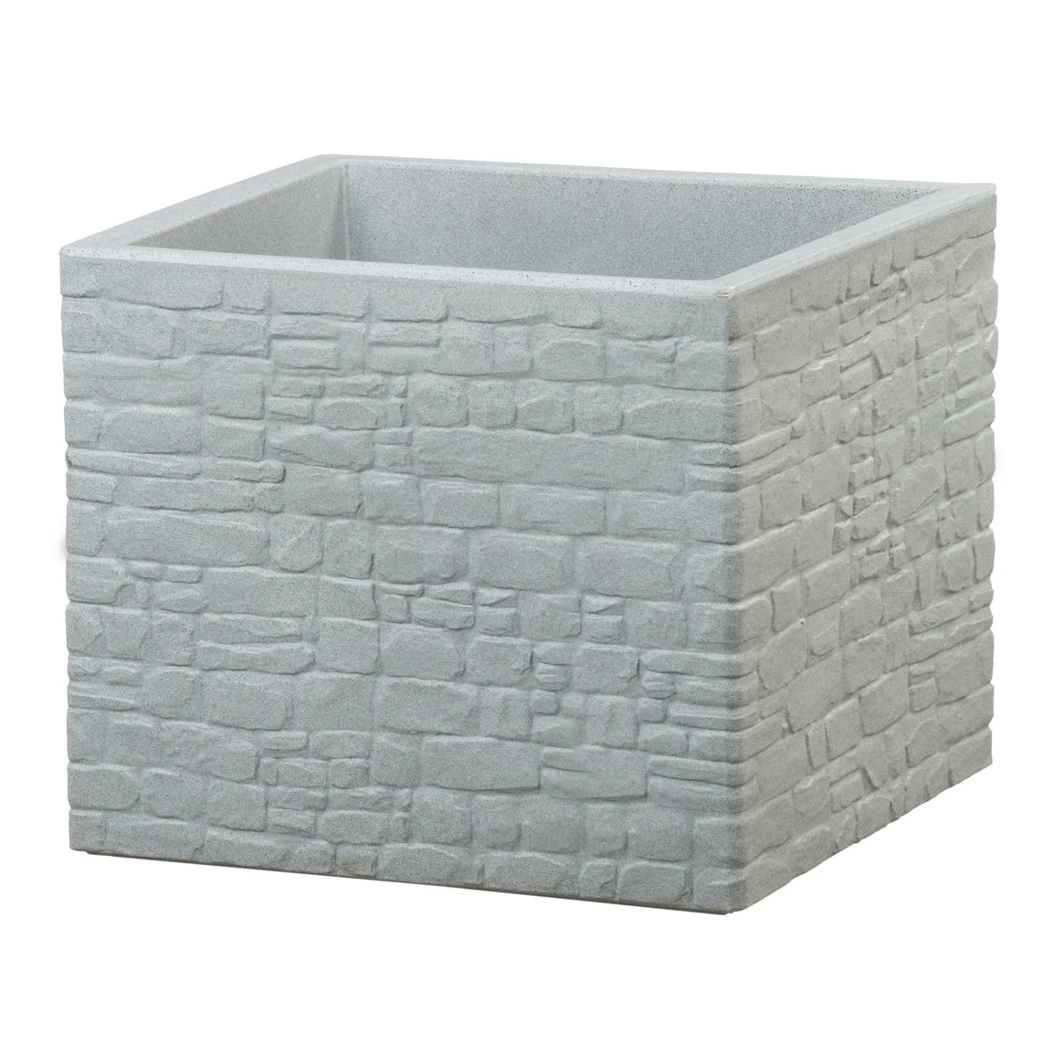 Pflanzgefäß ‚Muretto‘, Eckig, Stein, Grau, Kunststoff