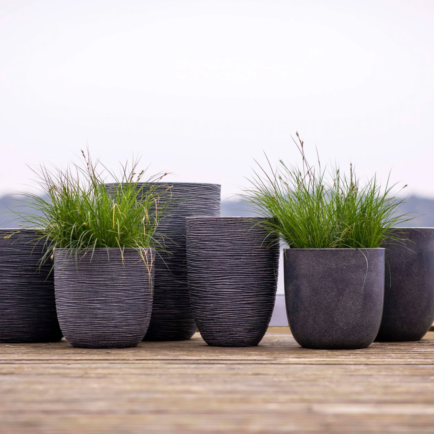 Pflanzgefäß ‚Rib‘, Grau