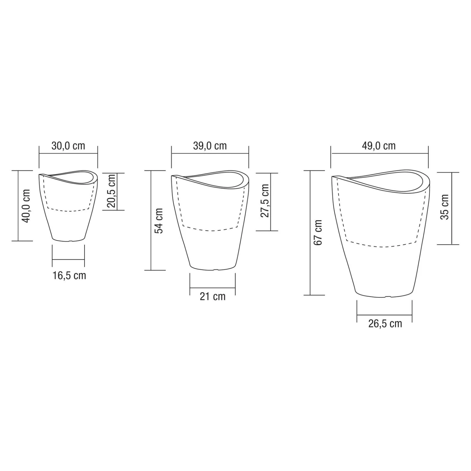 Im Rotationsgußverfahren hergestellt, ermöglicht der patentierte Verschluss für den Wasserablauf eine ganz individuelle Verwendung des dekorativen Pflanzgefäßes im Innen- sowie im Außenbereich.