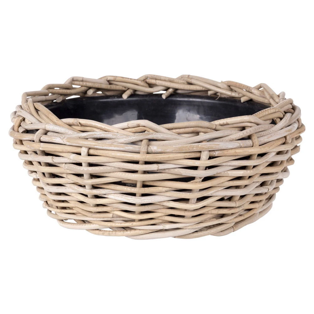 Mit der Drypot Pflanzschale entscheiden Sie sich für ein zeitloses und dekoratives Pflanzgefäß, welches Sie sowohl innen wie auch außen verwenden können. Die Blumenschale besteht aus einem Korb aus grauer Weide sowie einem fest integrierten Einsatz. Der Korb selbst hat keinen Boden und steht somit auf dem Boden des Einsatzes.
