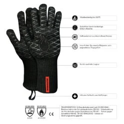 Sie erhalten den FEUERMEISTER® Premium BBQ Grillhandschuh als Paar in einer attraktiven Geschenkverpackung. Für Begeisterung sorgen die hitzebeständigen Materialien Aramid und Nomex sowie die praktische Silikon-Applikation, die dem Grillhandschuh ein Plus an Griffigkeit verleiht. Der Premium BBQ Grillhandschuh FEUERMEISTER® bietet ausgezeichneten Schutz und sieht schick aus.
