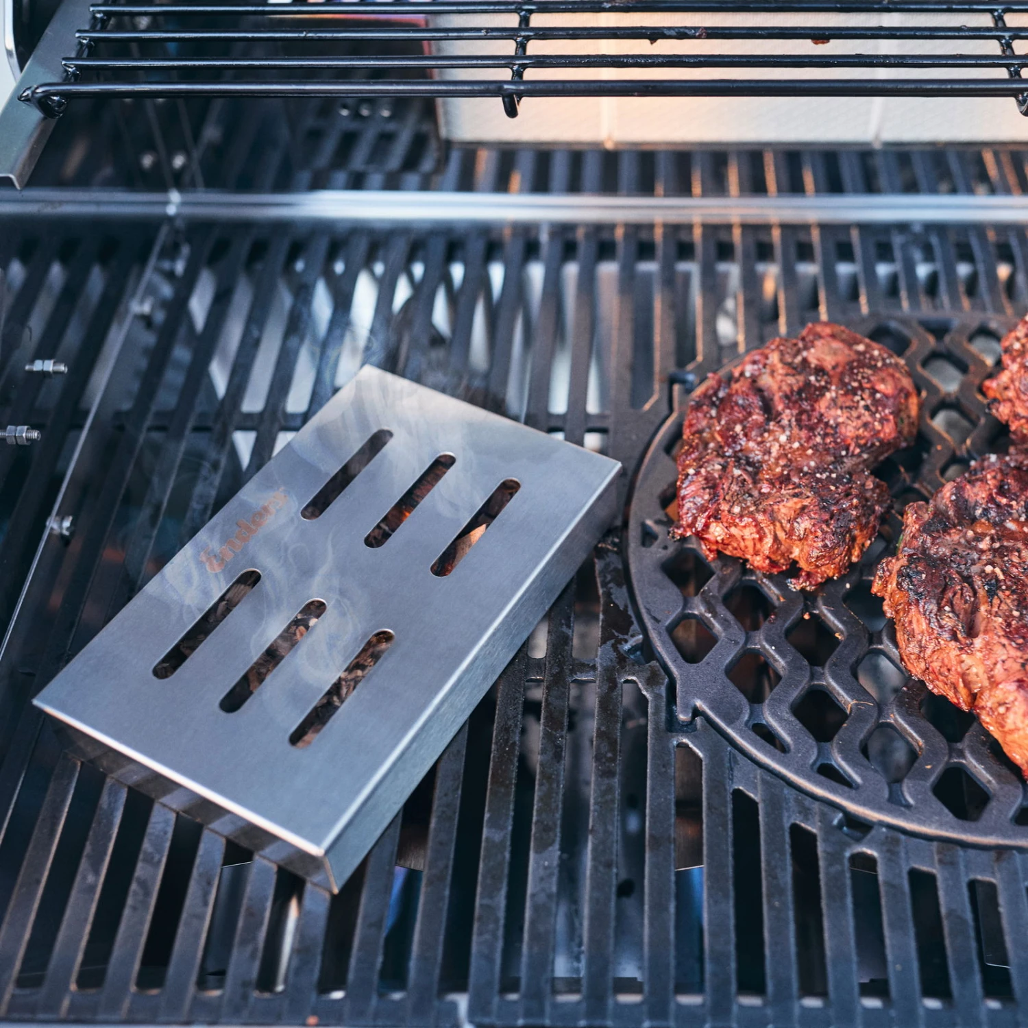 Befüllen Sie diese formstabile Edelstahl-Räucherbox je nach Wunsch mit Räuchermehl oder Räucherchips aus Ihrer Lieblingsholzsorte, um Ihr Grillgut mit fantastischen Räucheraromen zu verfeinern. Die Räucherbox von Enders hebt Ihr Grillevent auf ein neues Level und ist mit den meisten Grillgeräten kompatibel.