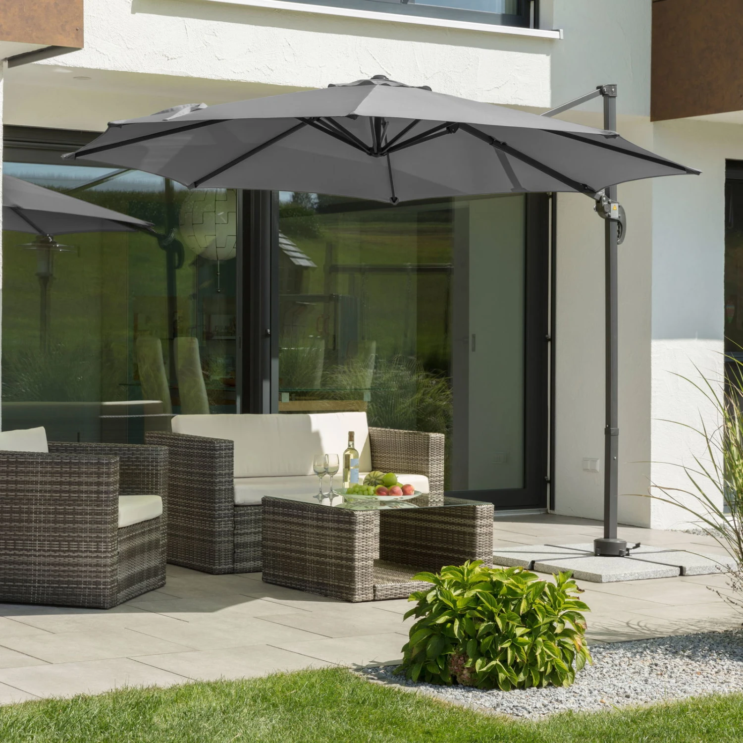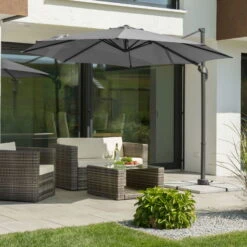 Der runde Ampelschirm Rhodos Junior von Schneider ist ein komfortabler und sicherer Sonnenschutz für glühend heiße Tage. Es genügen wenige Handgriffe, um den Pendelschirm Rhodos Junior exakt an den Sonnenstand anzupassen. Ein weiterer Vorteil des Modells ist die pflegeleichte und langlebige Bespannung aus Polyester.