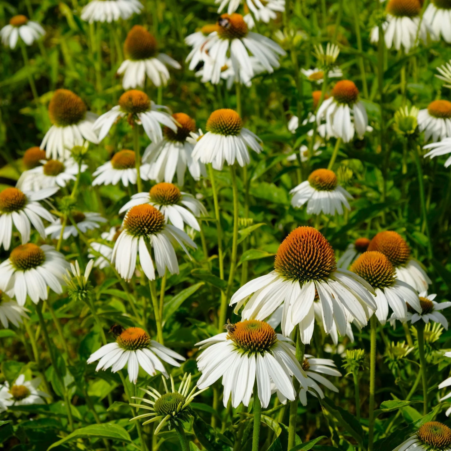 Der weiße Sonnenhut ist als Auslese aus der bekannten, rotblühenden Sonnenhut-Art entstanden. Bienen und anderen Insekten dient die blühfreudige Pflanze über viele Wochen als wichtige Nahrungsquelle, auch Schmetterlinge lieben die zauberhafte Staude.