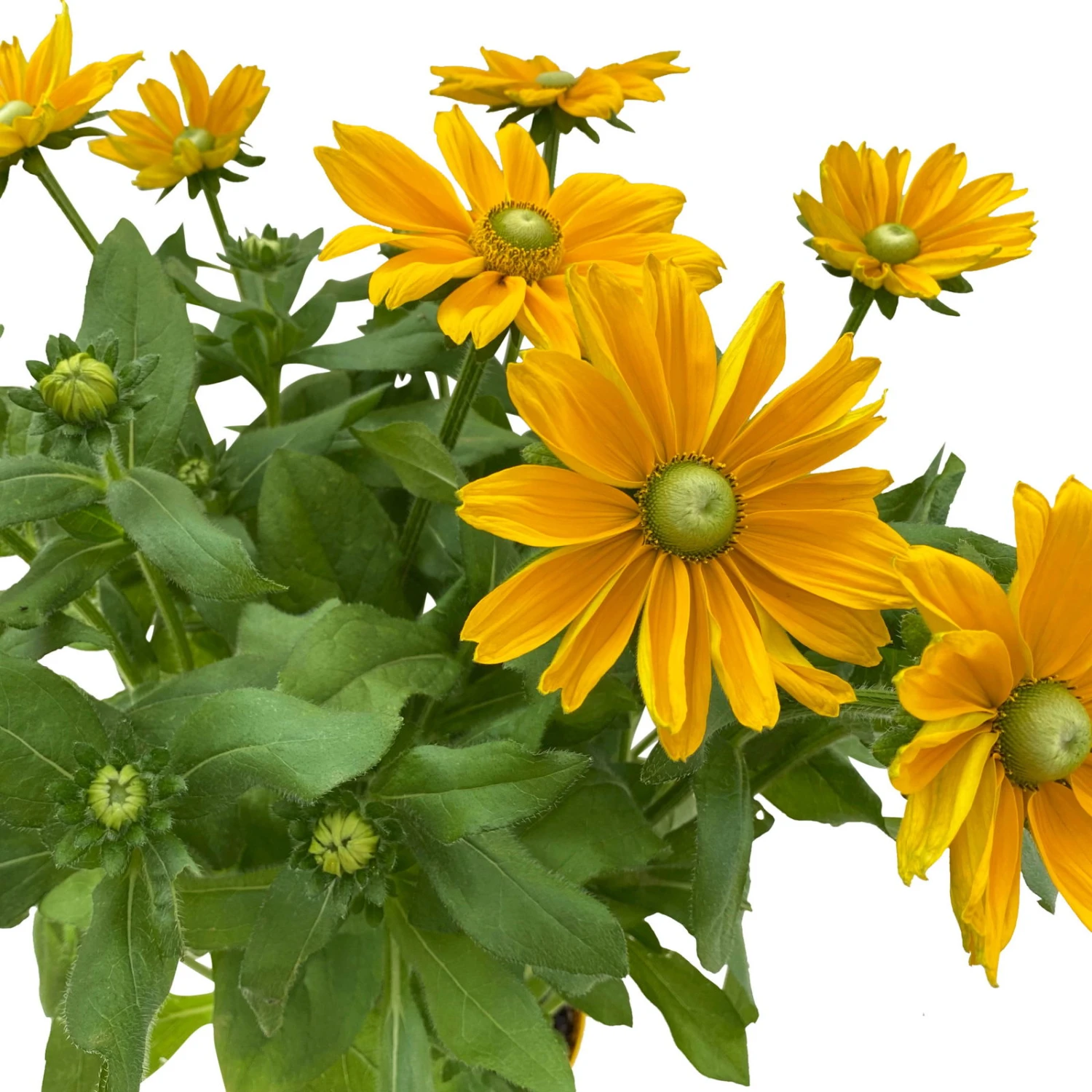 Die Blüte hat häufig ein braunes Blütenkorbchen in der Mitte und ist von den Blütenblättern umgeben. Es gibt den Sonnenhut mit gefüllten oder ungefüllten Blüten. Die gelben Blüten setzen sommerliche Akzente in Ihrem Zuhause. Die gelbe Sorte wird nach Verfügbarkeit geliefert.